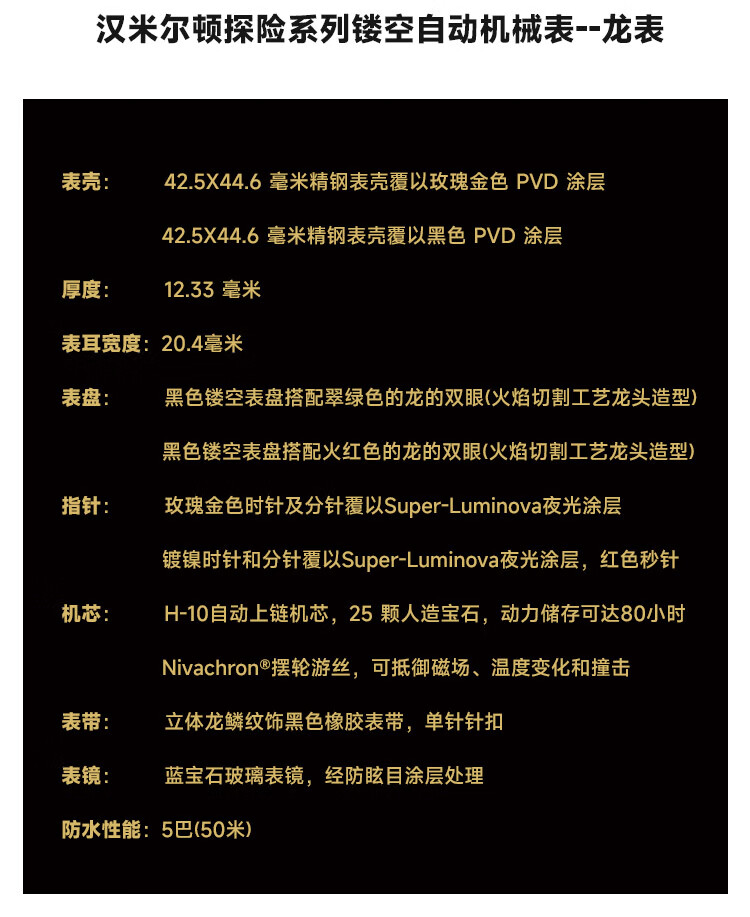 汉米尔顿 Hamilton 探险系列龙表“大金龙”自动机械男表 H24525332