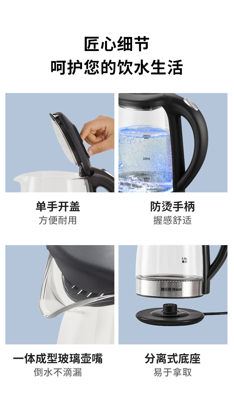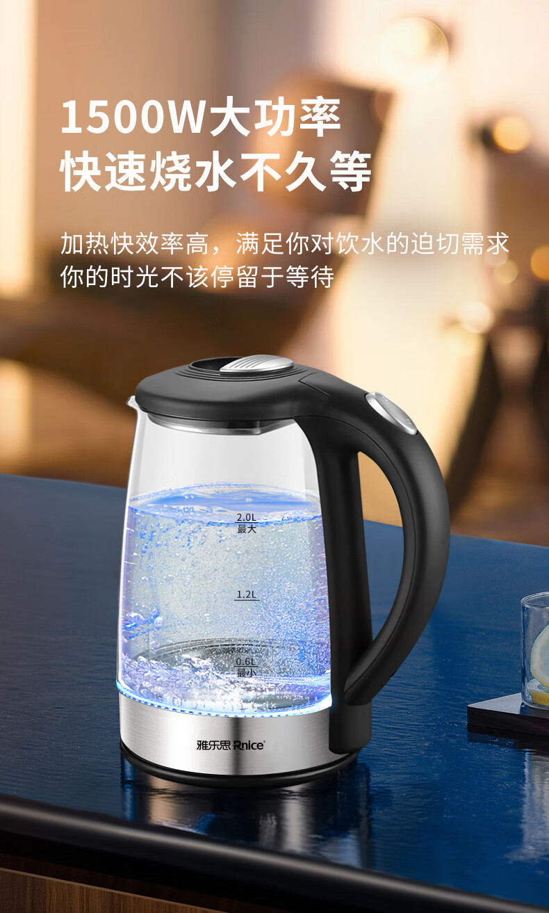 雅乐思(Rnice) 雅乐思 高硼硅玻璃电水壶 YLS-15X18B1 白色