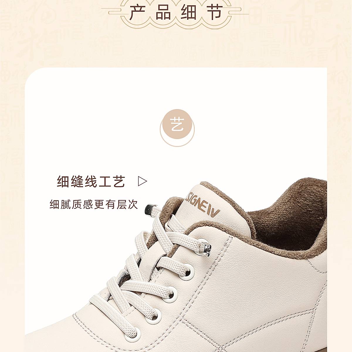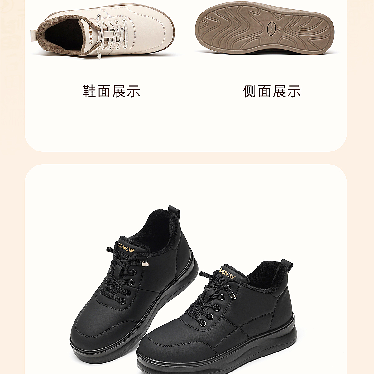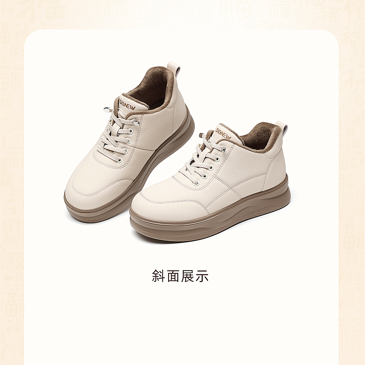 信诺2025冬季新款百搭小白鞋软底舒适棉鞋运动休闲妈妈鞋5M653-15TD