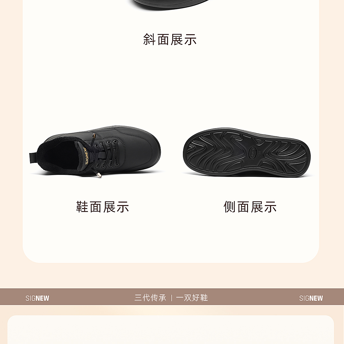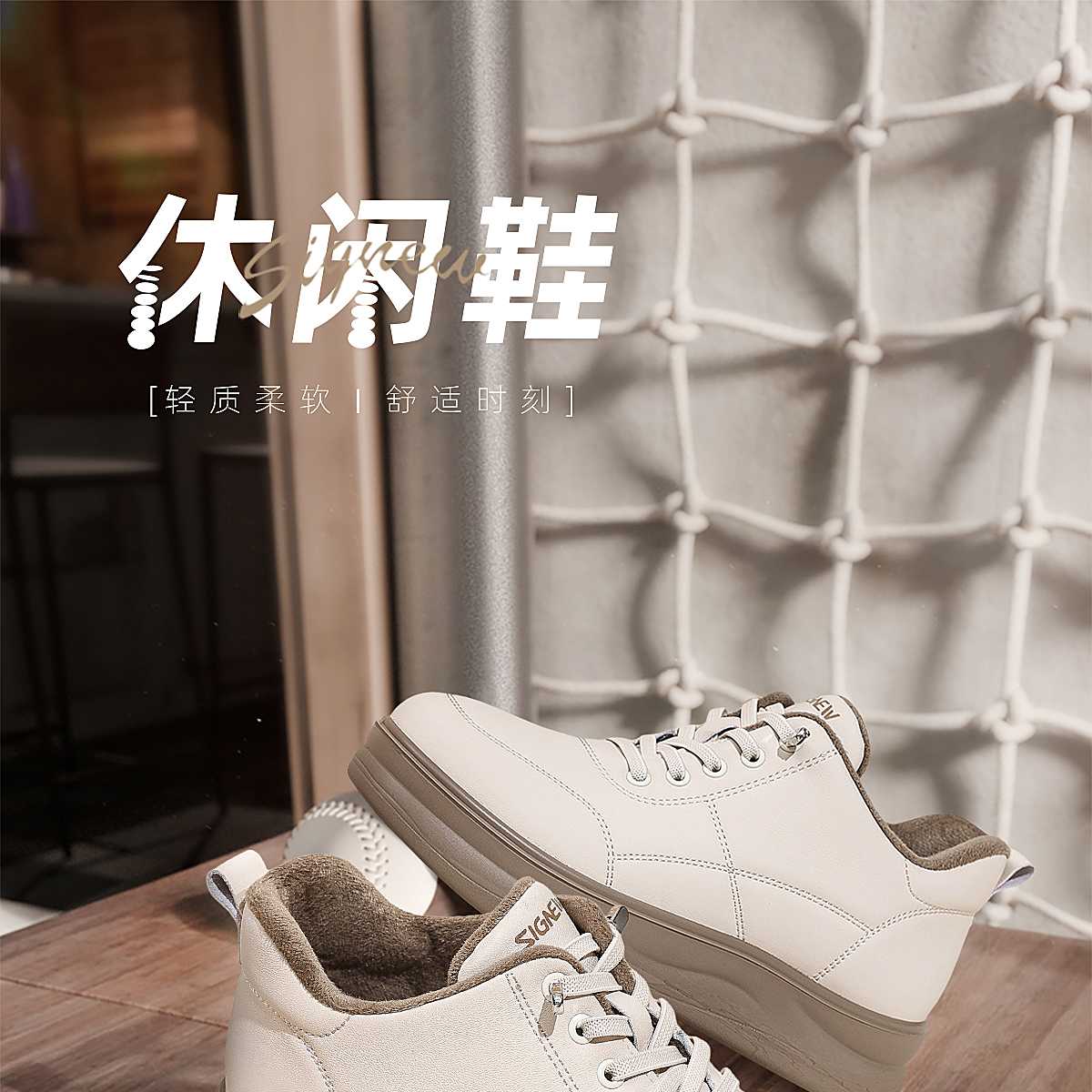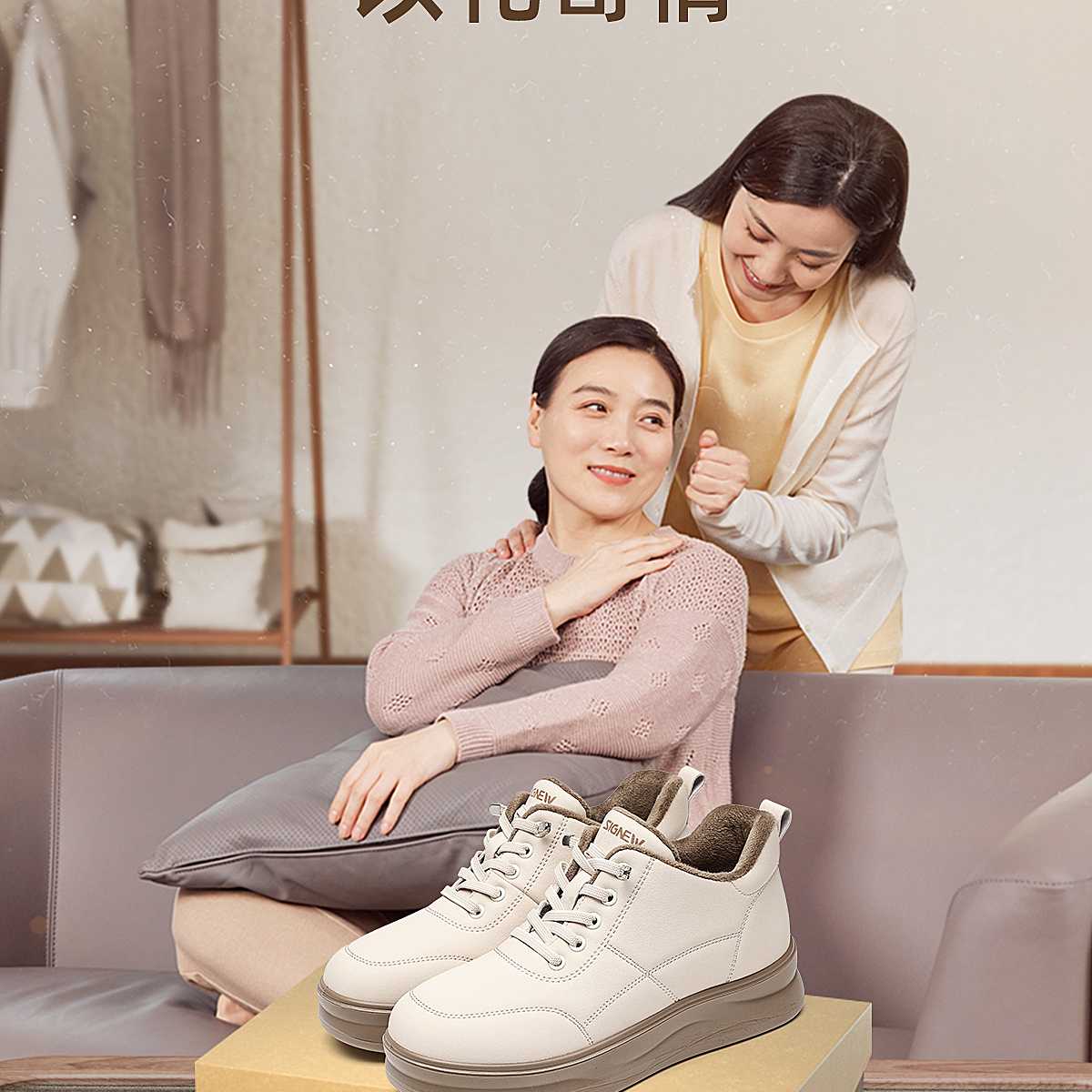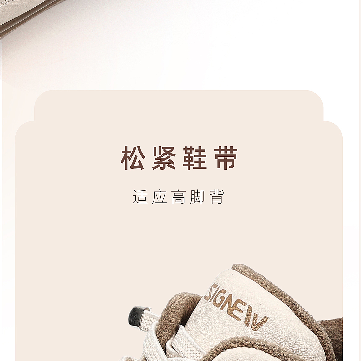 信诺2025冬季新款百搭小白鞋软底舒适棉鞋运动休闲妈妈鞋5M653-15TD