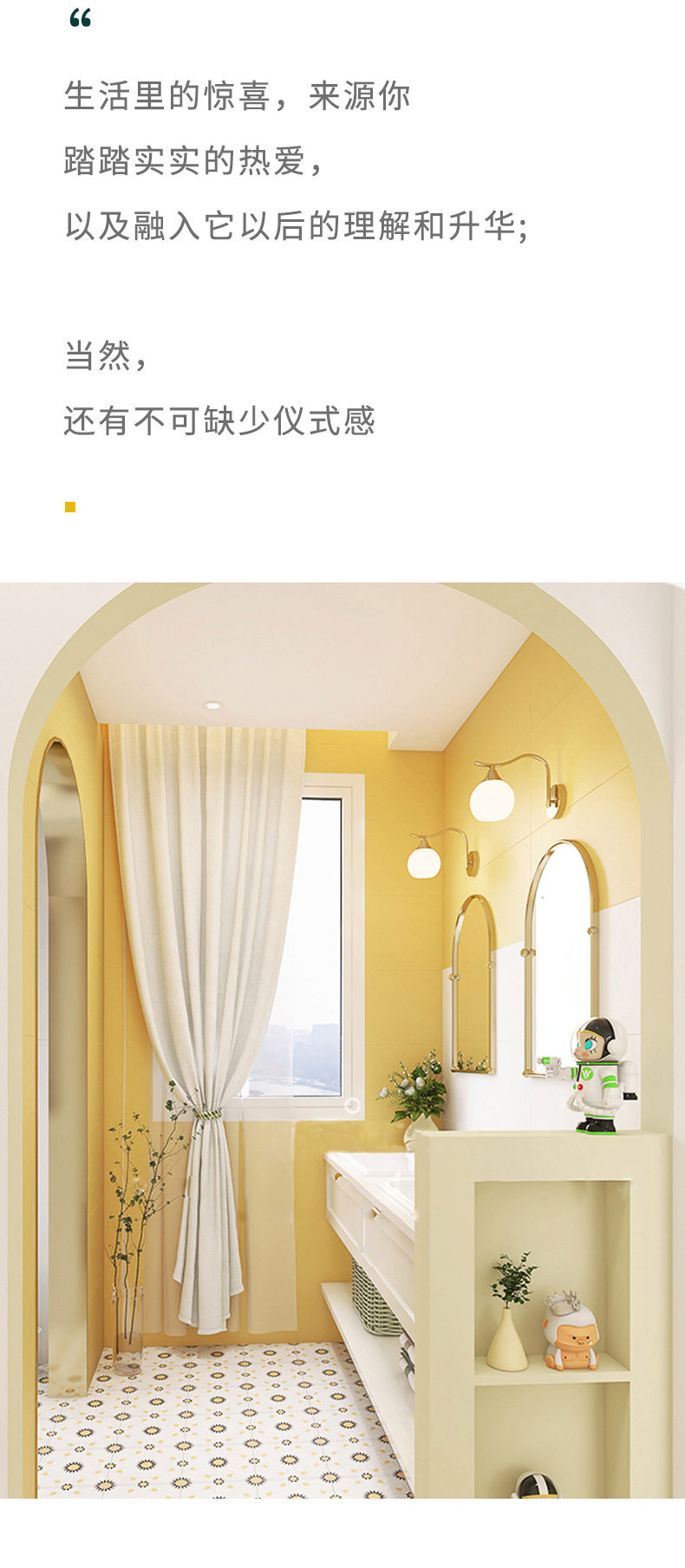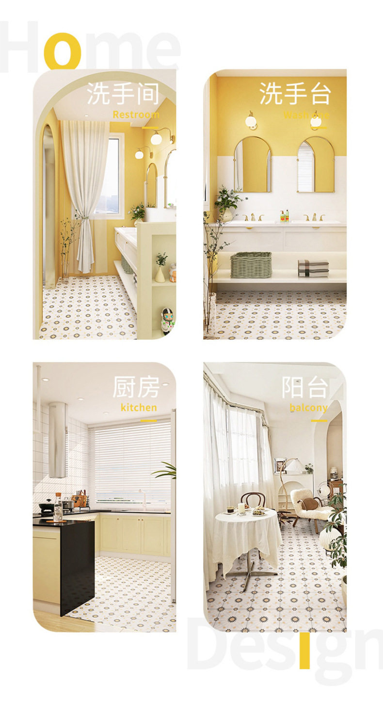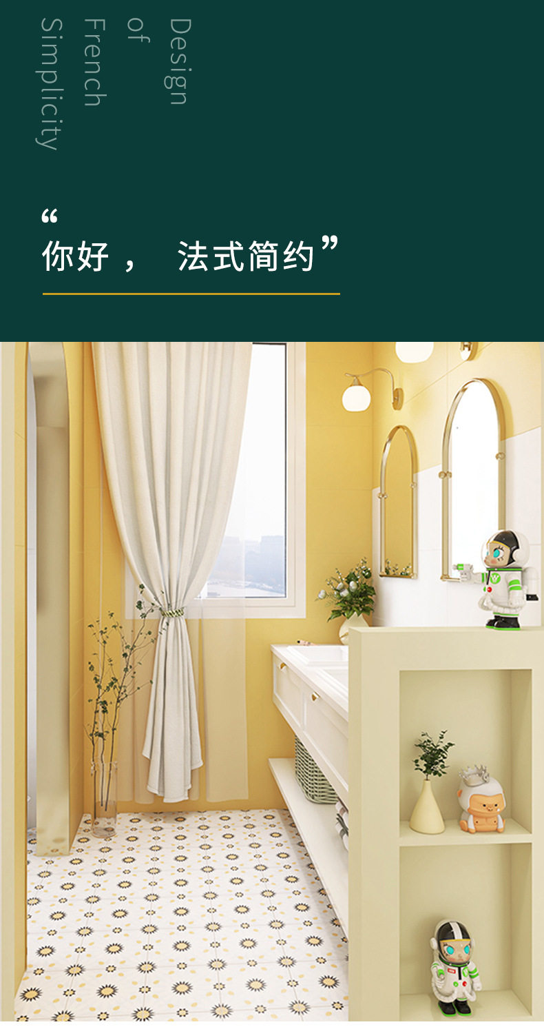 小墙砖风卫生间雏菊瓷砖地砖橙黄小浴室阳台200x200花砖法式奶油