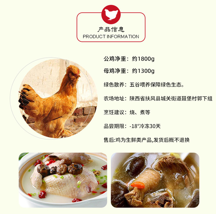 【高福农场 散养北京油鸡大公鸡】约1800g/只,空运直达,产地陕西扶风