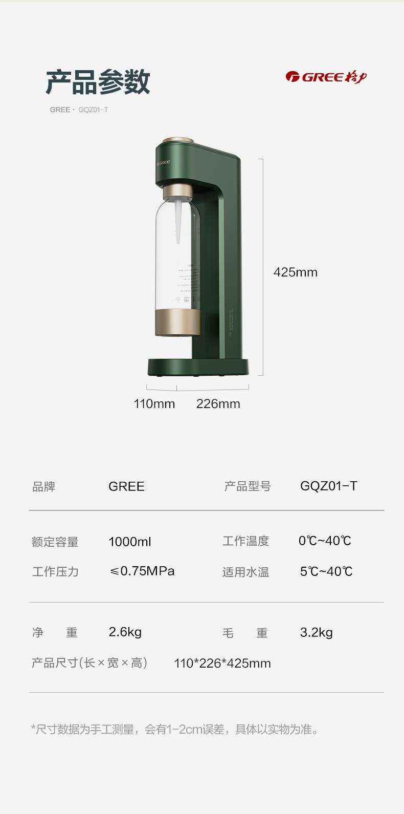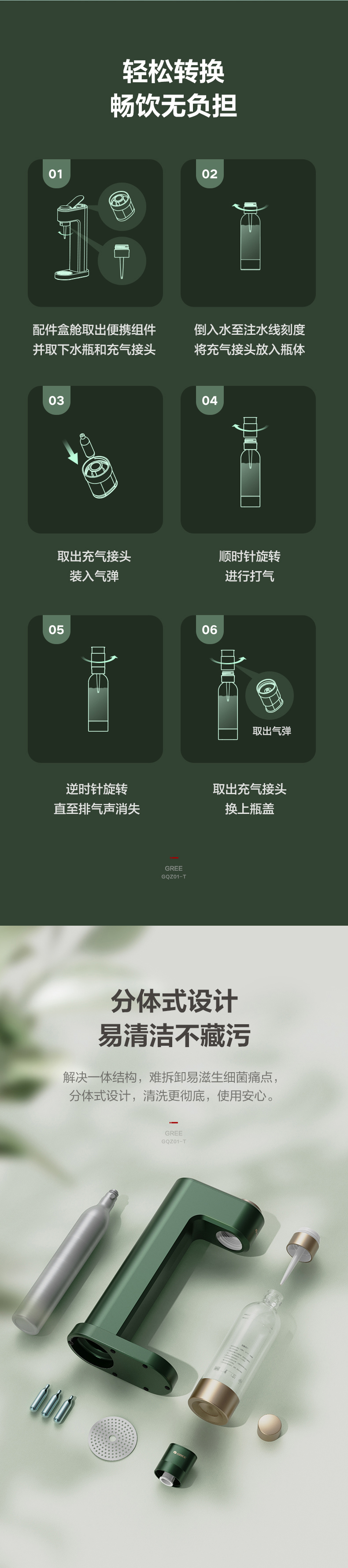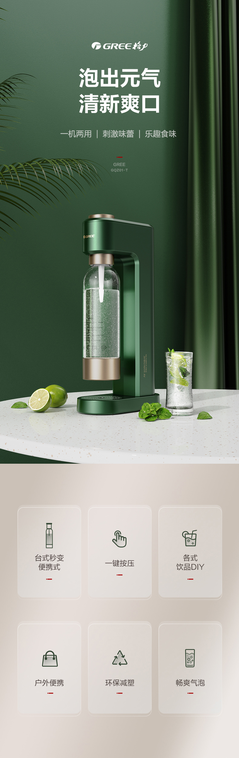 GREE格力 气泡水机 GQZ01-T 泡出元气 清新爽口 松杉绿色