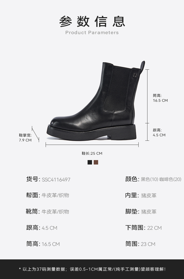 【绒里可选】星期六经典百搭气质保暖切尔西SSC4116497/SSC4118497