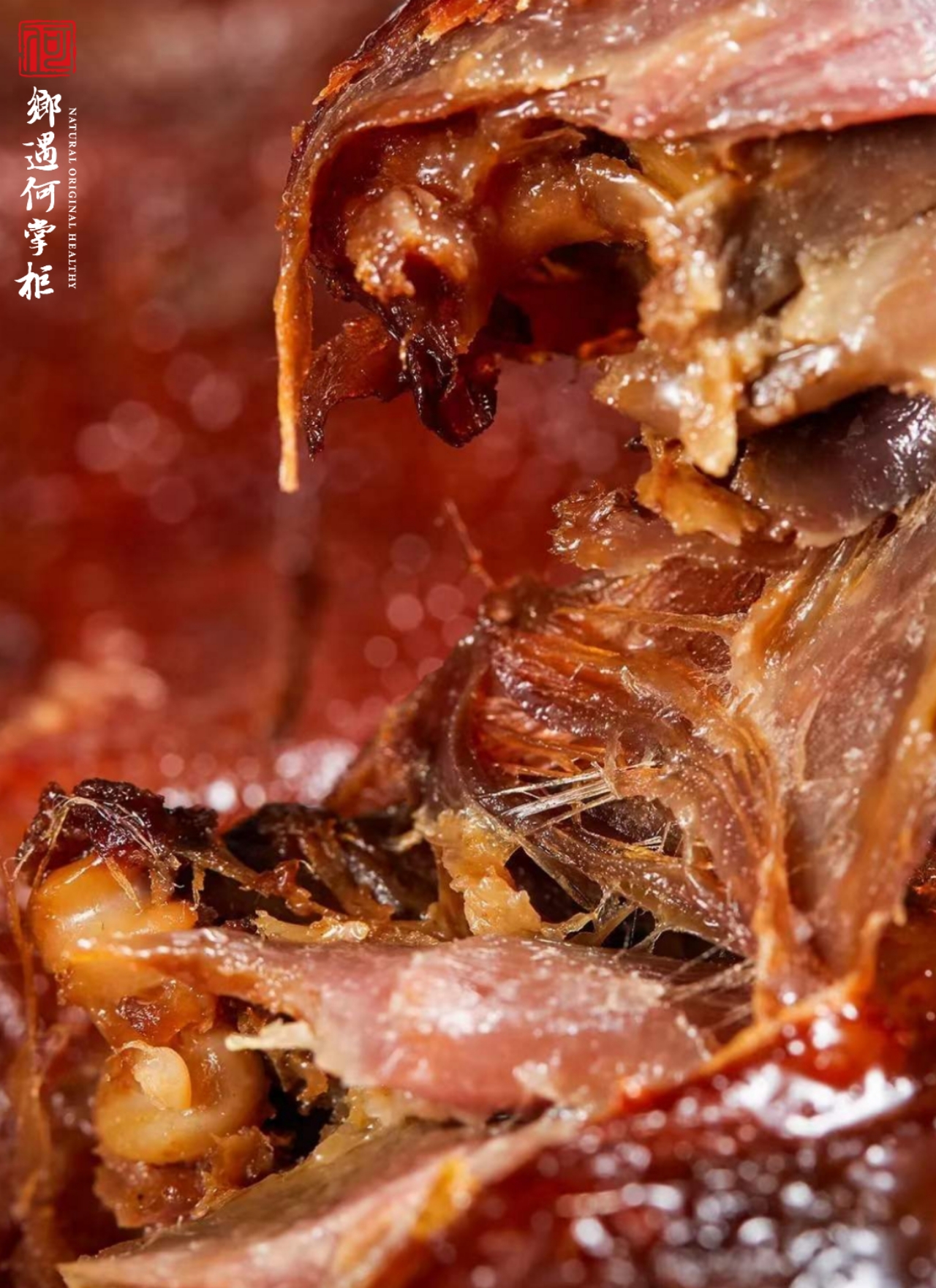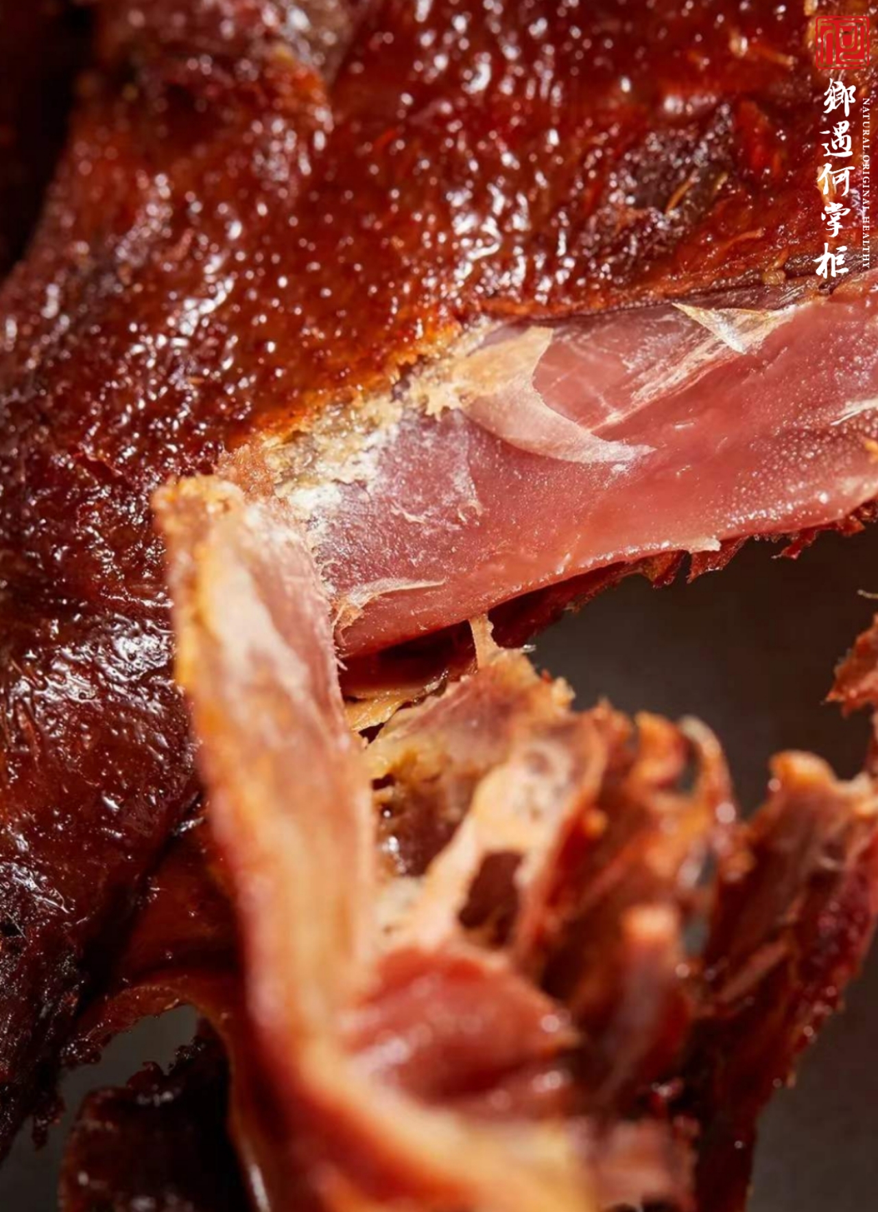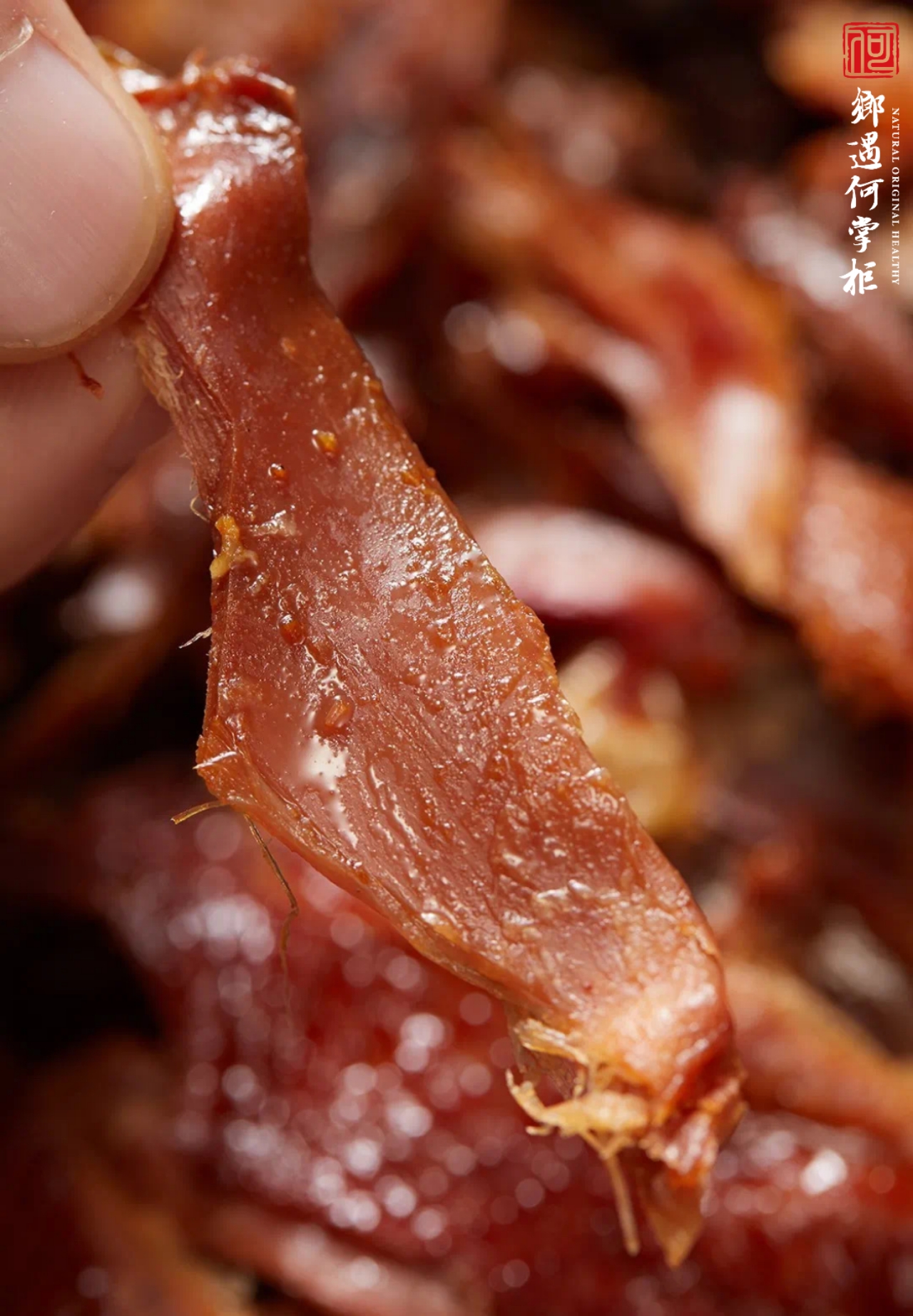 拿起一块,直接开撕!撕扯后根根可见的肌肉纤维,是鸭肉新鲜和烘烤工艺得当的有力证明。