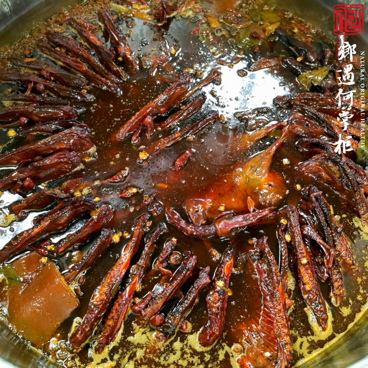 第四步:卤制。醇柔香辣的风味,源于独家秘制15年的老卤高汤,与高山朝天椒同煮入味。小火焖卤20-30分钟,浸透浸润每一寸鸭肉。每天卤制完成后,会对原汤进行过滤和冷藏处理,次日卤制时再重新投料,以此往复。