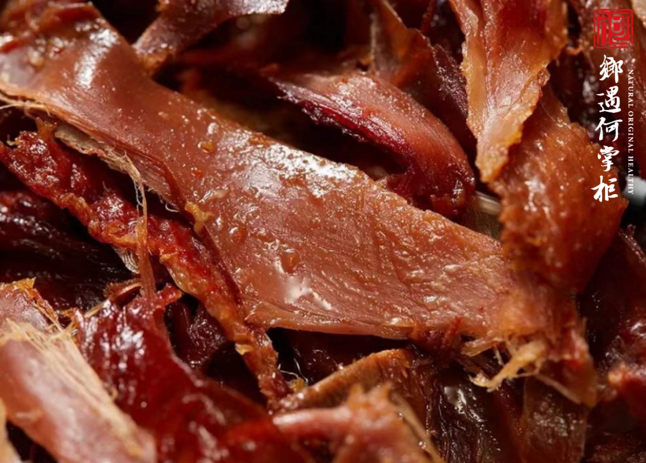 皮Q肉紧,肥膘油脂甚少,意外的,不是想象中费牙费劲的干硬。