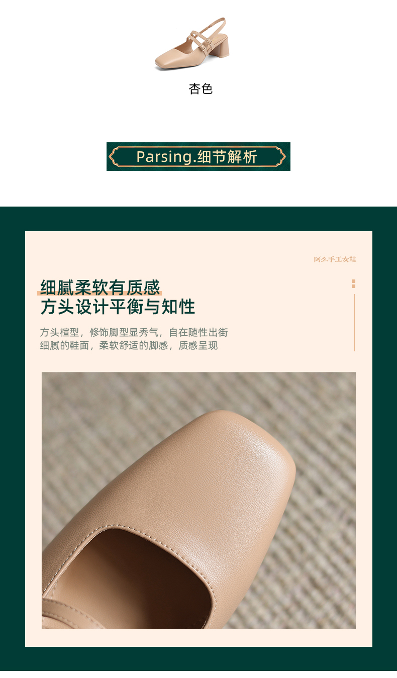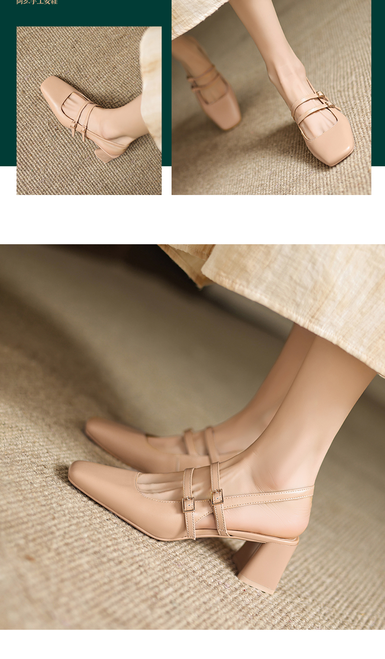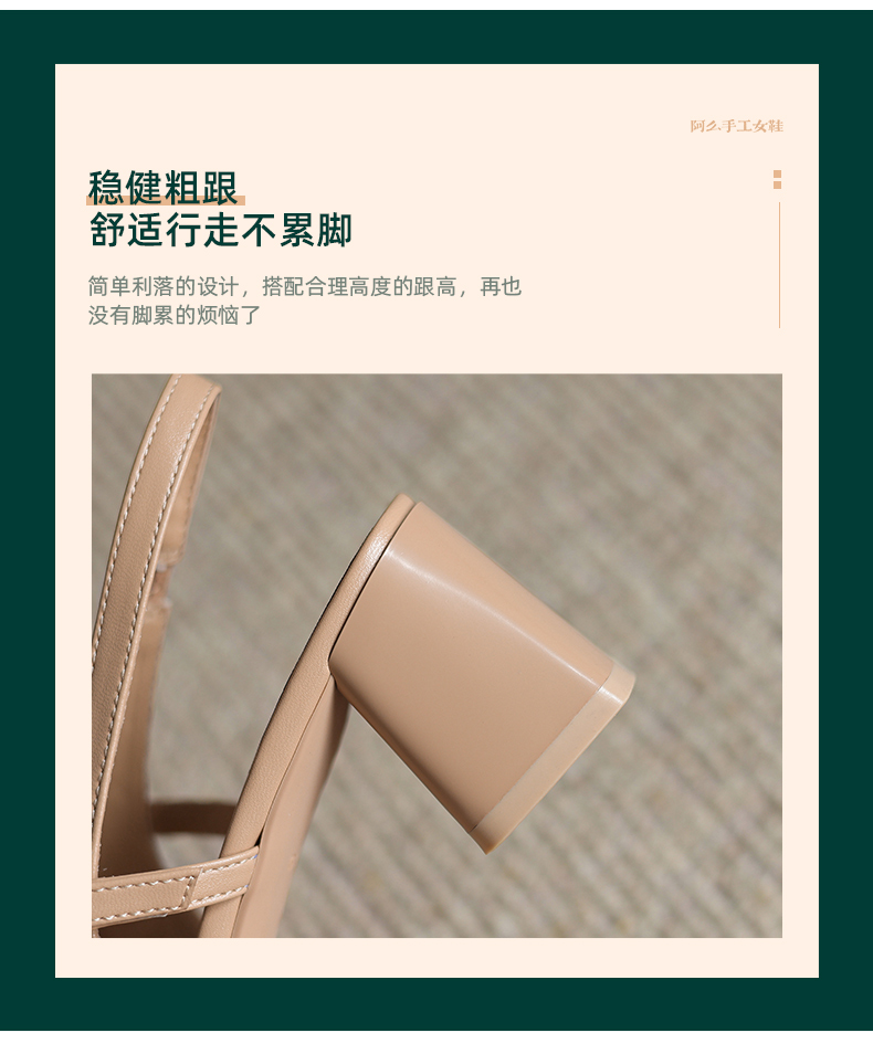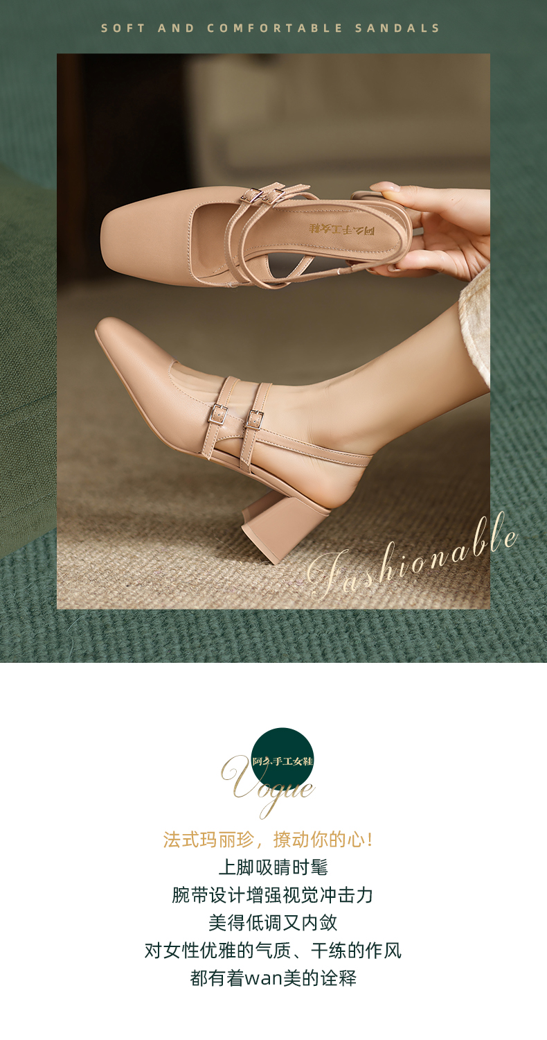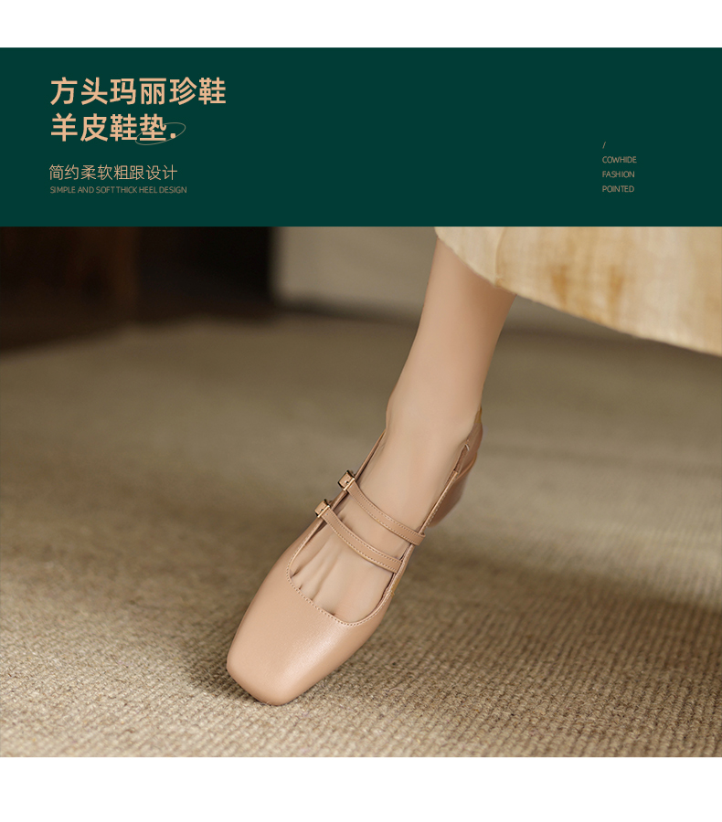 阿么手工女鞋2025夏季新款法式玛丽珍气质小方头粗跟浅口鞋5.5CM