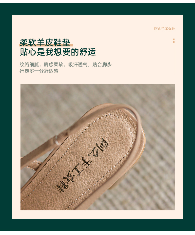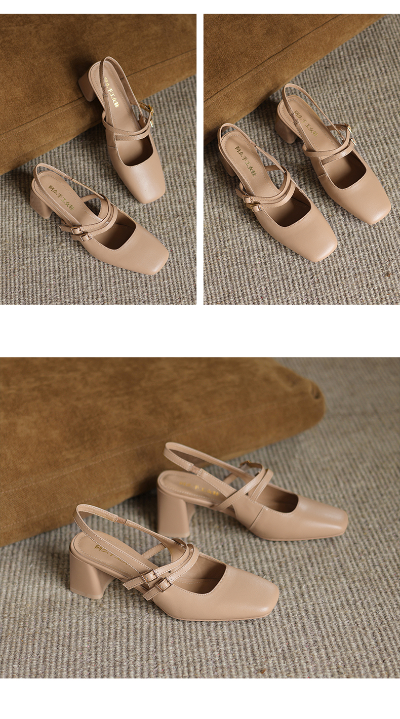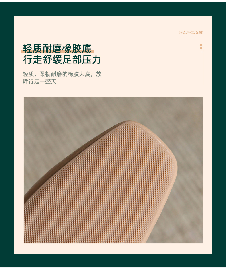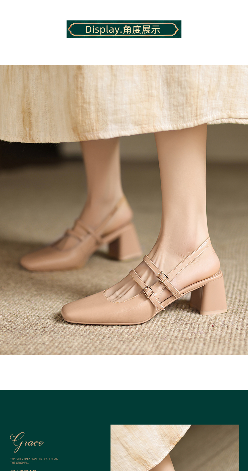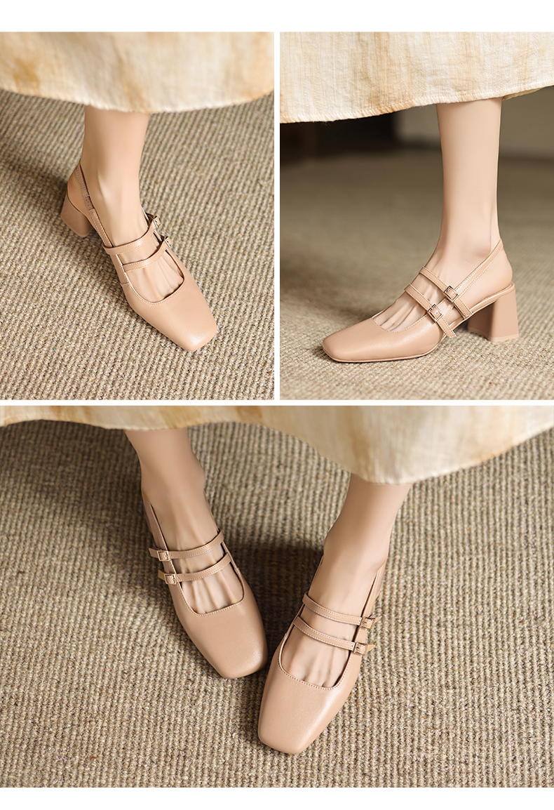 阿么手工女鞋2025夏季新款法式玛丽珍气质小方头粗跟浅口鞋5.5CM