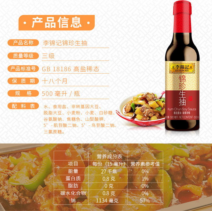 李锦记 锦珍生抽500ml 常州盐业有限公司