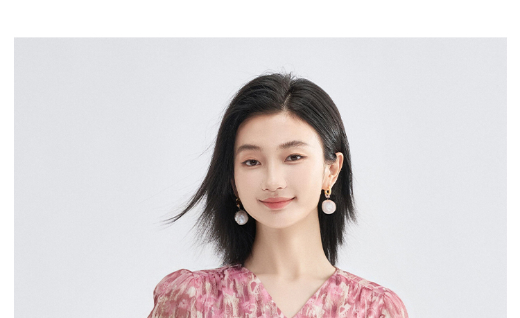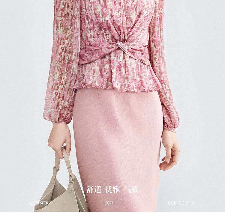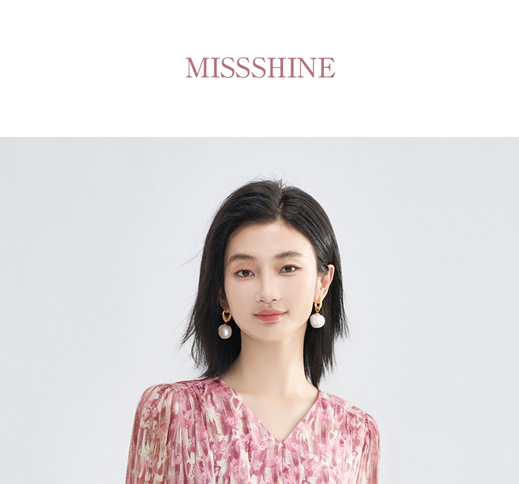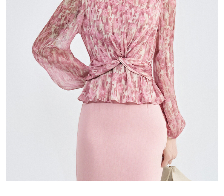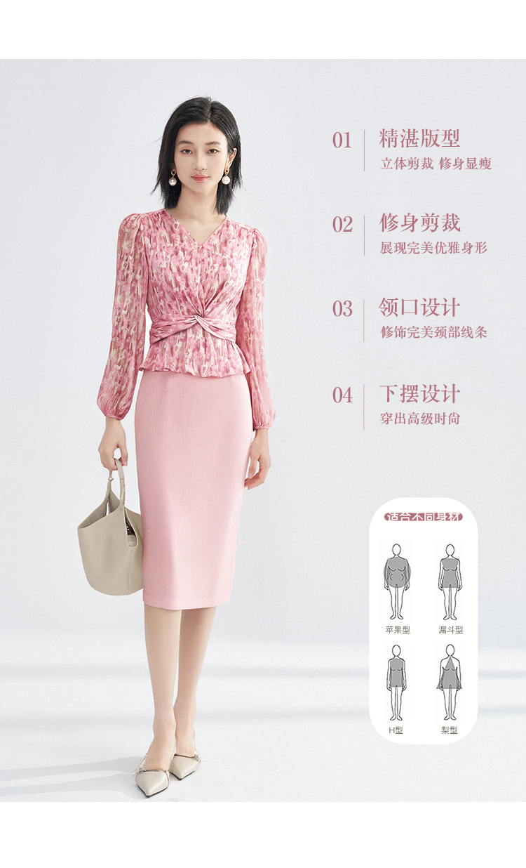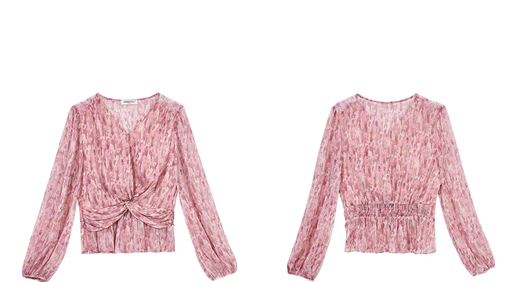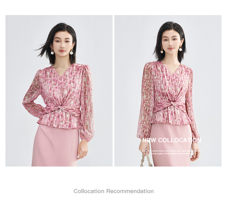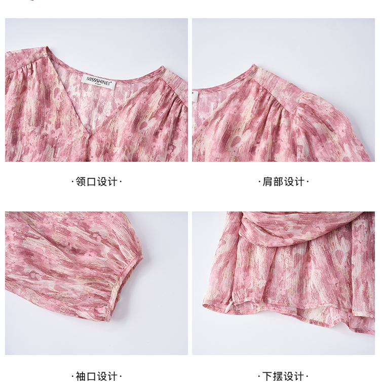 米思阳优雅风减龄印花收腰衬衫长袖V领显瘦衬衣女4266