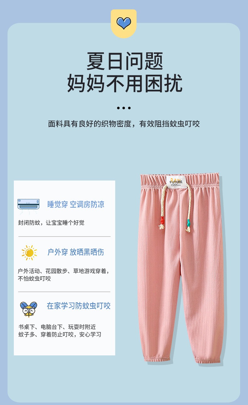 【49.9元3条防蚊裤】清凉冰丝休闲防蚊裤 轻薄透气/柔软亲肤/冰感丝 触感清凉如水 穿着亲肤又舒适