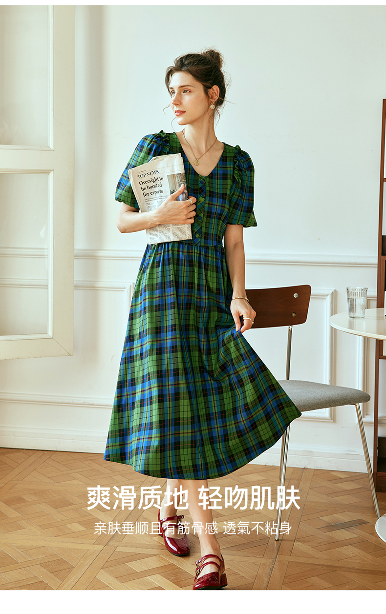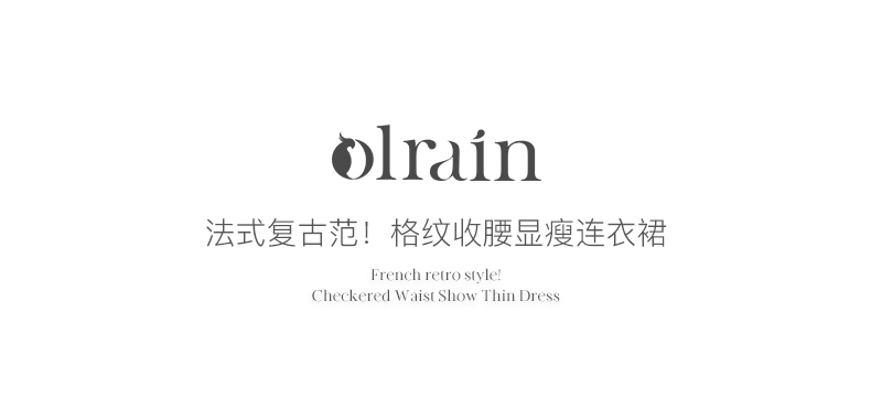 OLrain欧芮儿法式格子连衣裙女夏季2023年新款收腰复古泡泡袖裙子