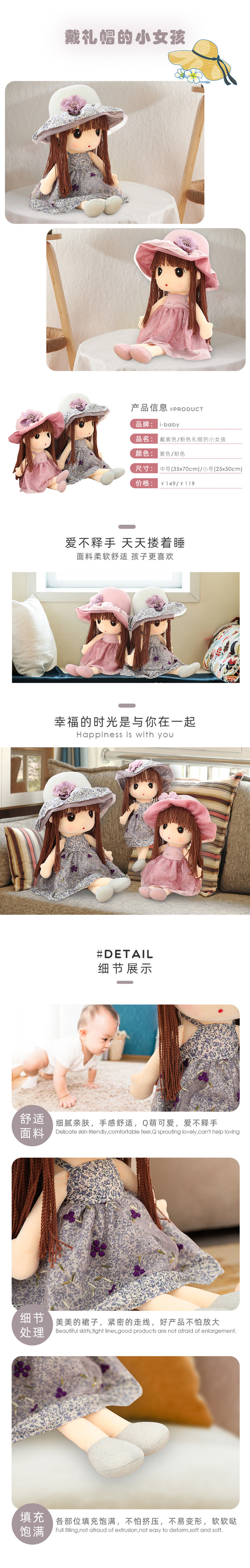 i-baby 戴礼帽的小女孩 陪伴安抚娃娃玩偶 周岁伴手礼物 小女孩洋娃娃玩具