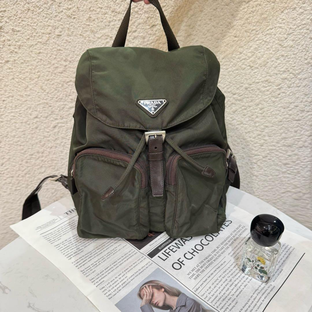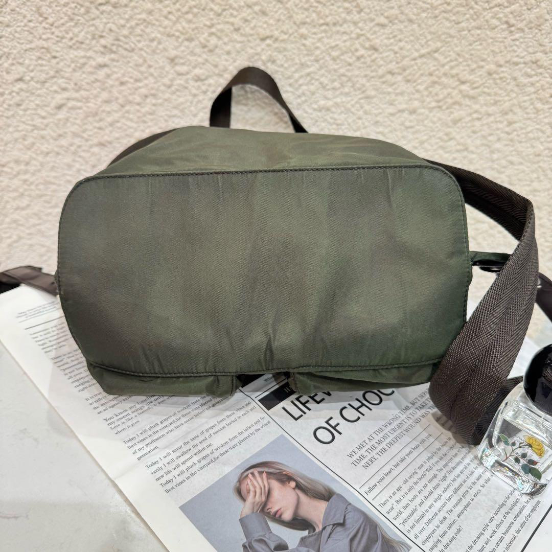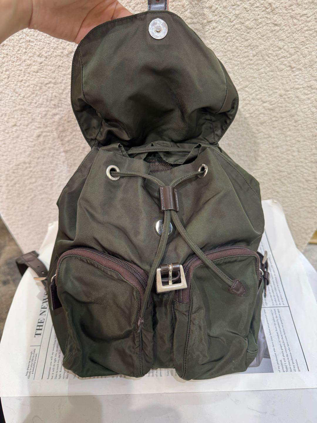 正品二手 Prada 军绿色 尼龙 降落伞双肩包🎒93新 23x27 包身正常使用感泛红 酷飒双肩 超出片