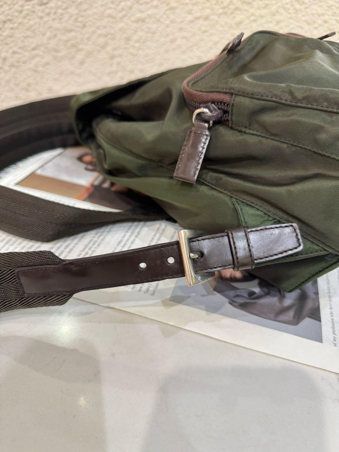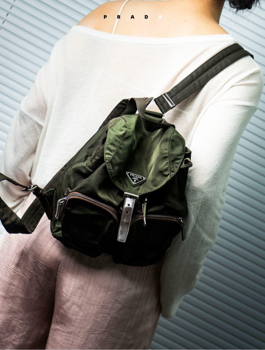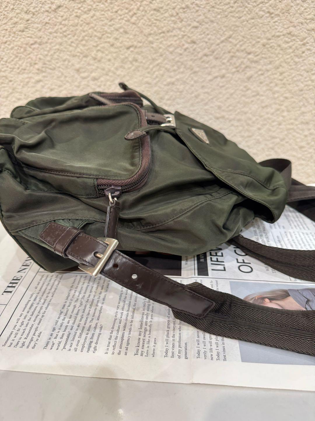正品二手 Prada 军绿色 尼龙 降落伞双肩包🎒93新 23x27 包身正常使用感泛红 酷飒双肩 超出片