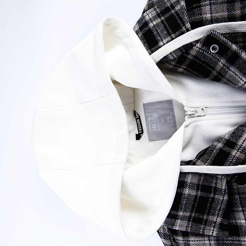 【断码清仓】HX 冬季带帽茄克衫格纹质感C105440012101/02
