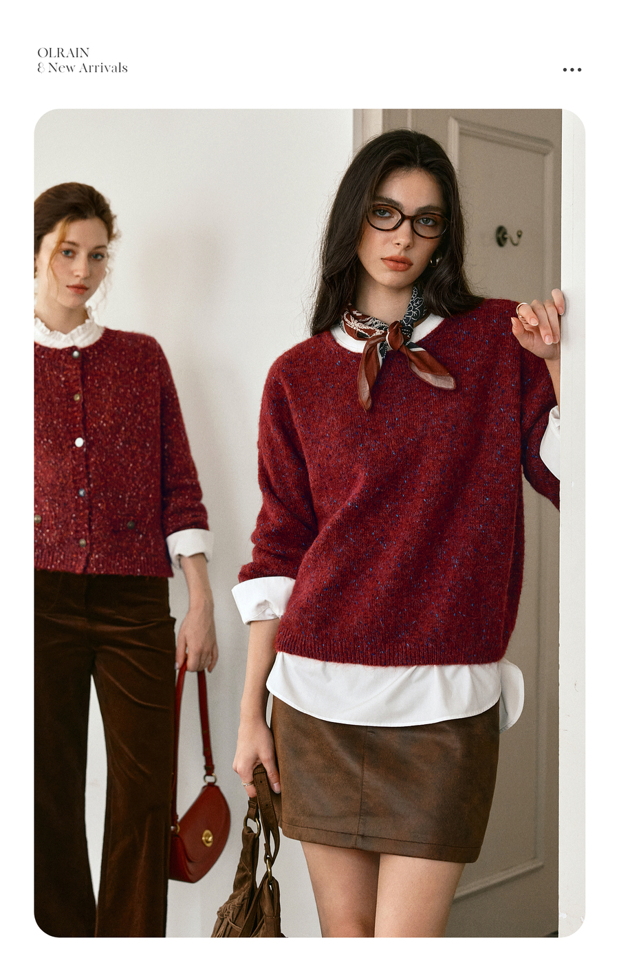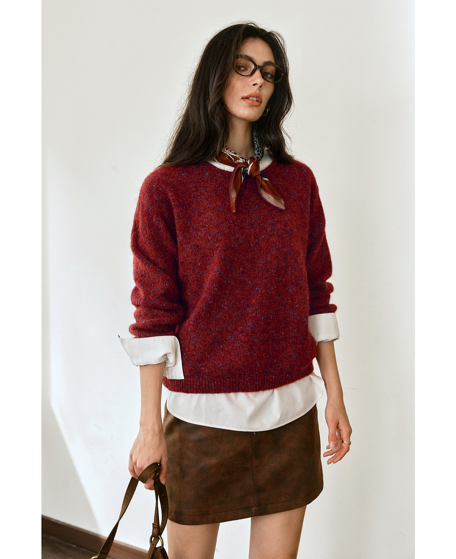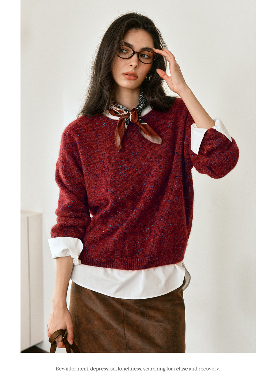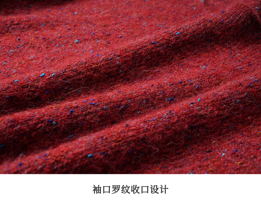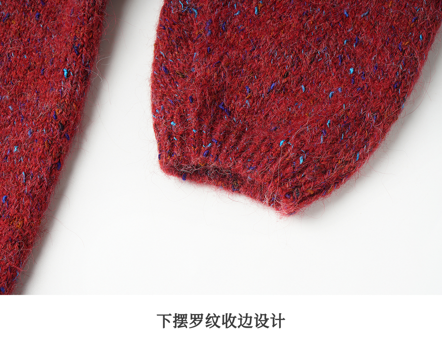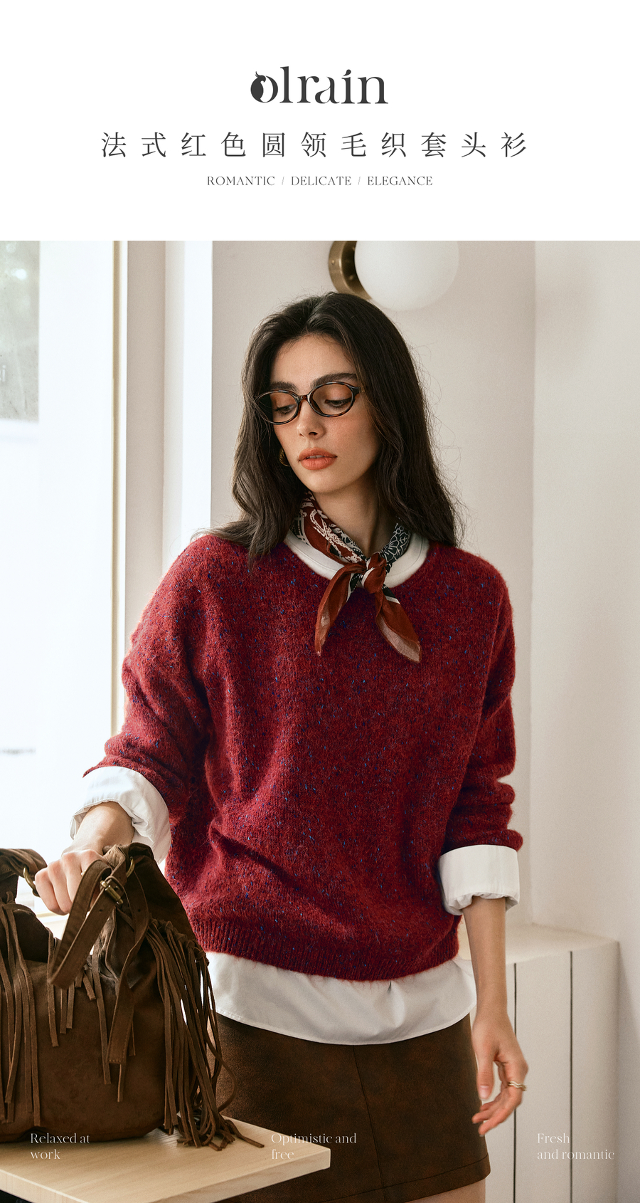 OLrain欧芮儿2025新款女秋季法式红色圆领毛织套头衫通勤长袖上衣