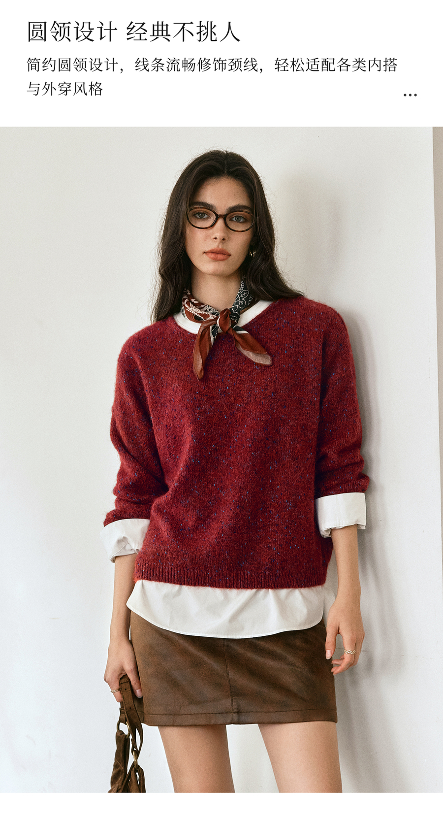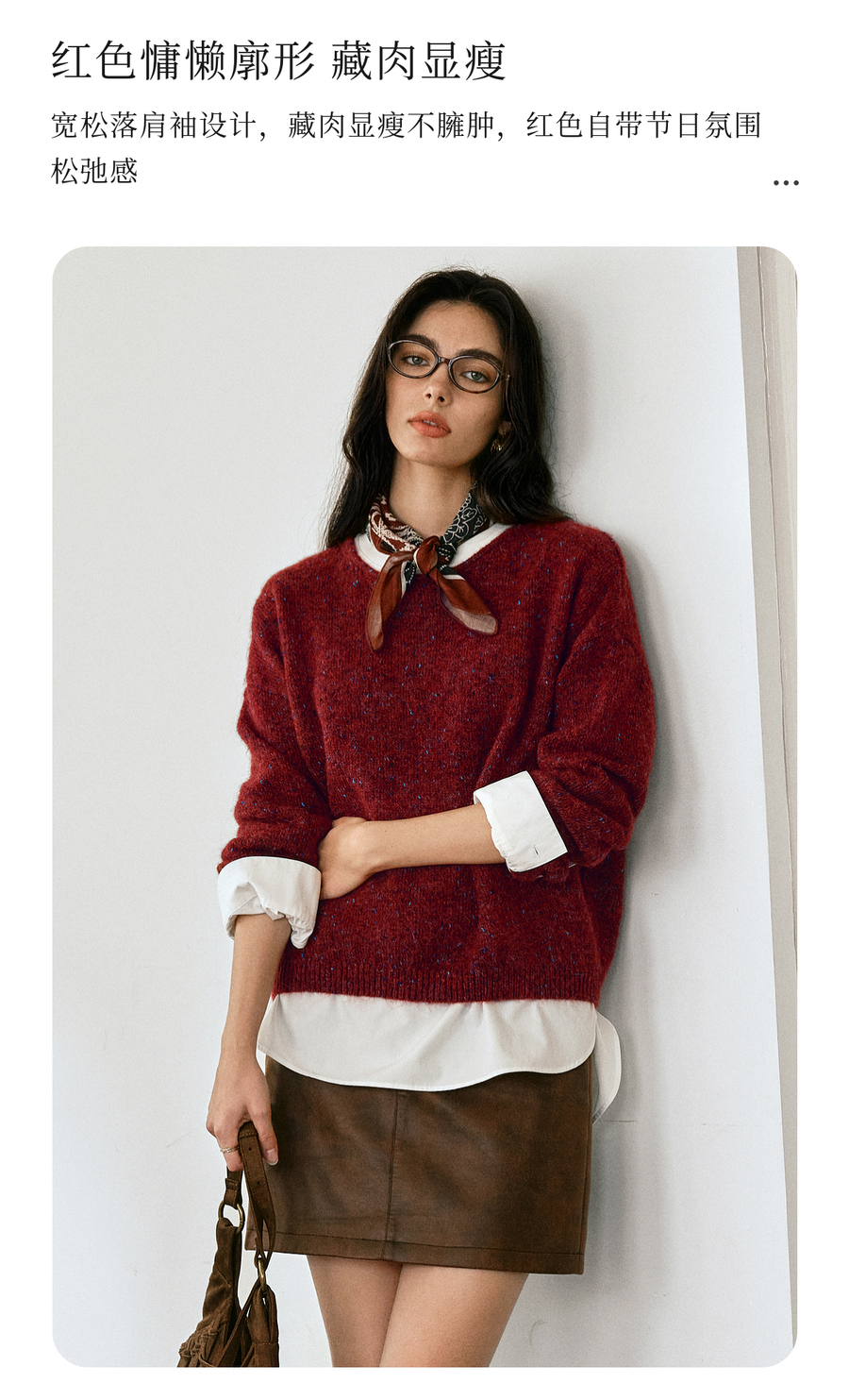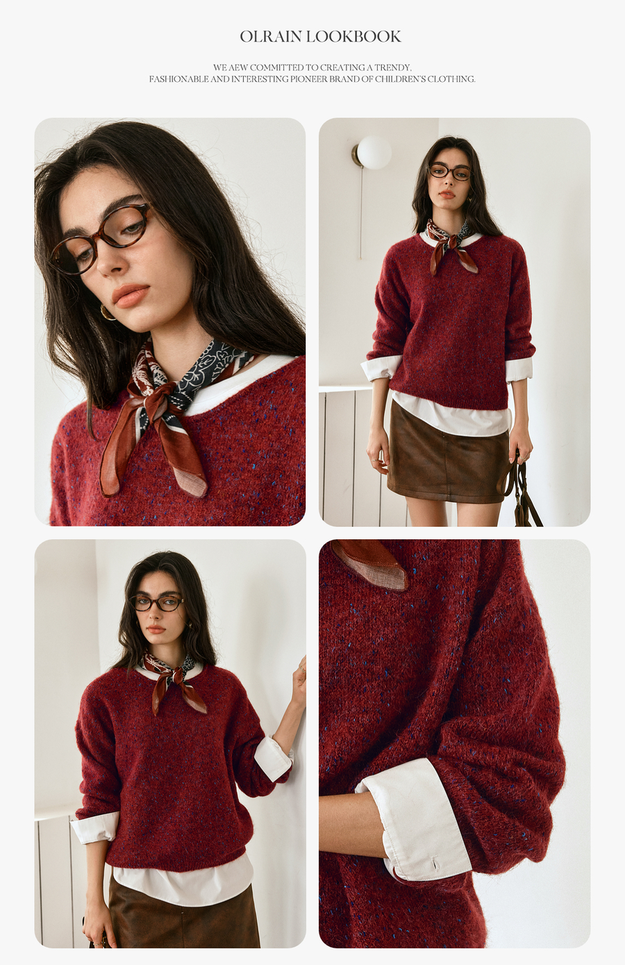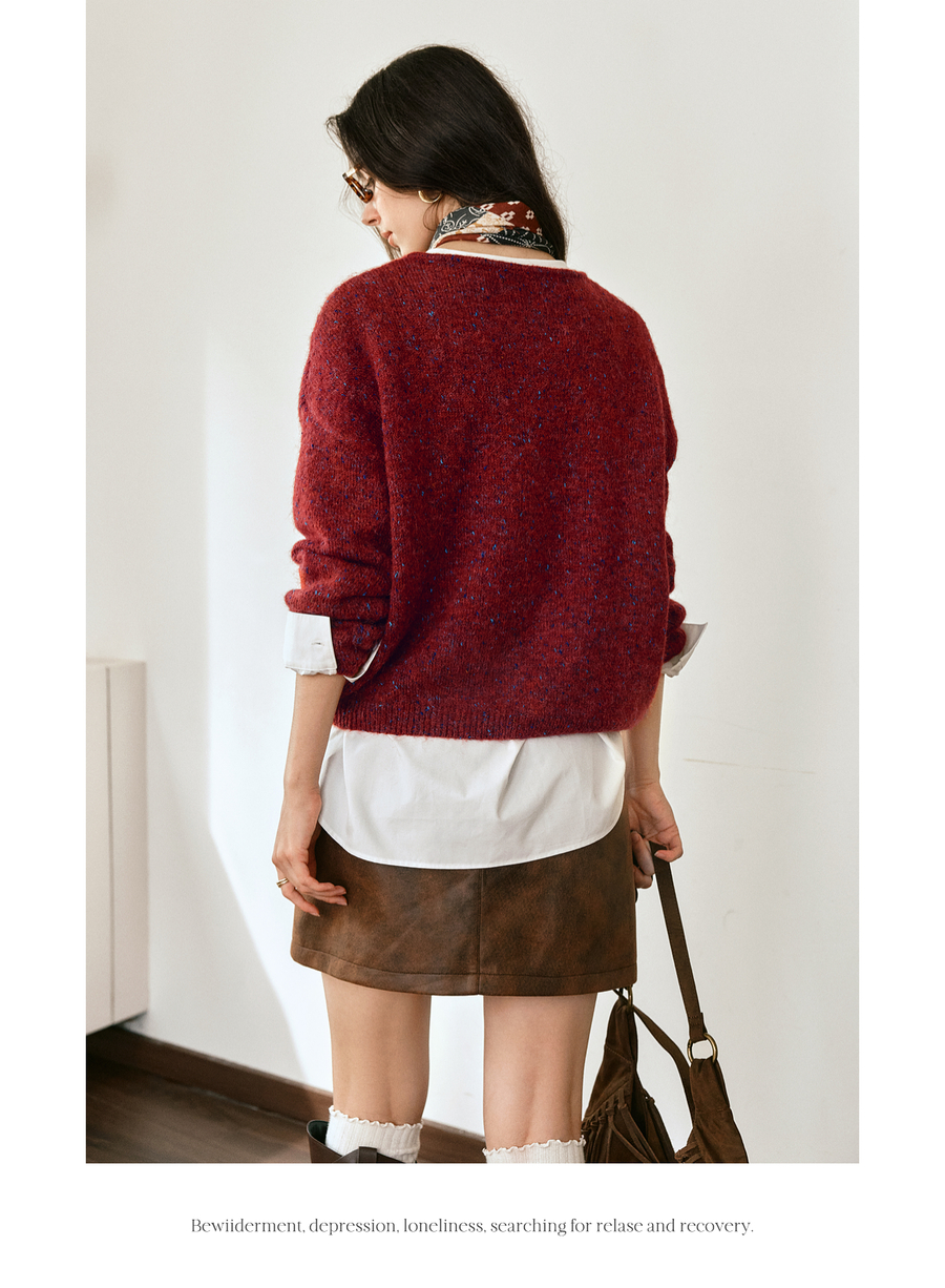 OLrain欧芮儿2025新款女秋季法式红色圆领毛织套头衫通勤长袖上衣
