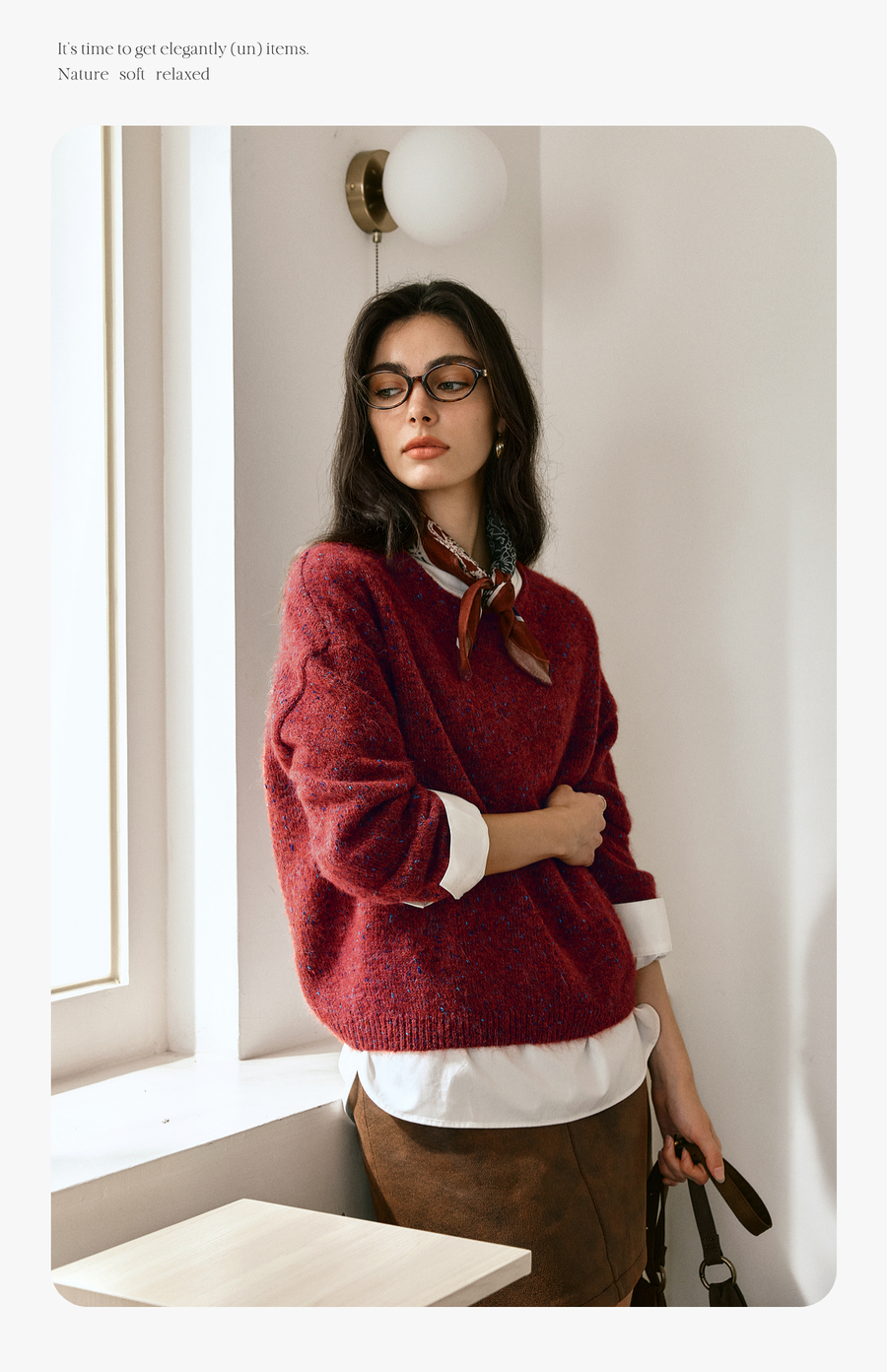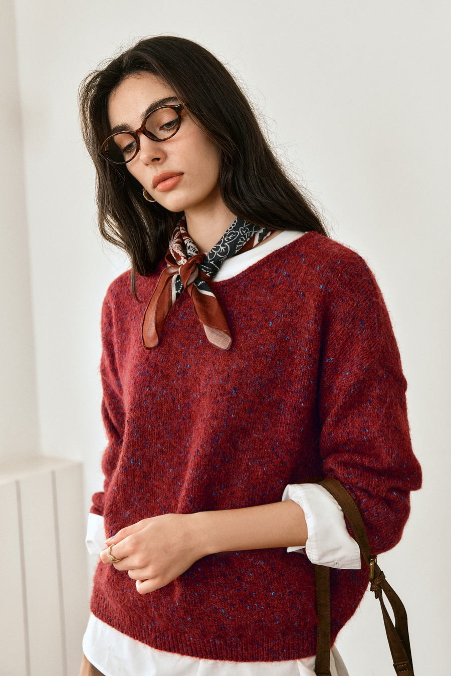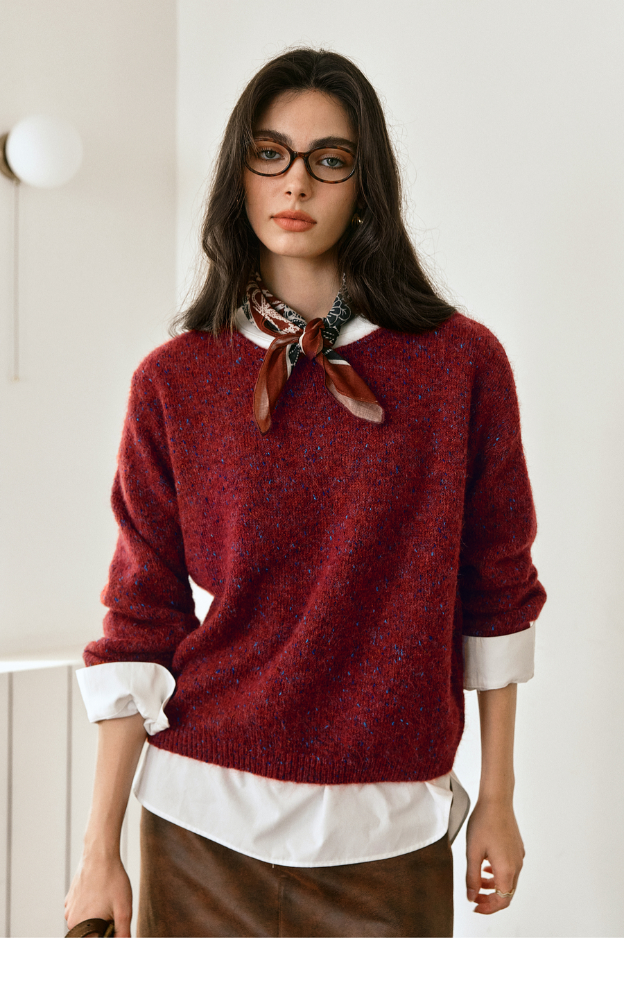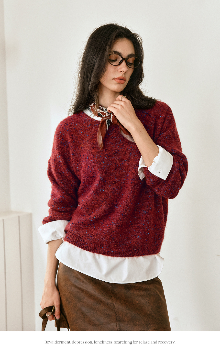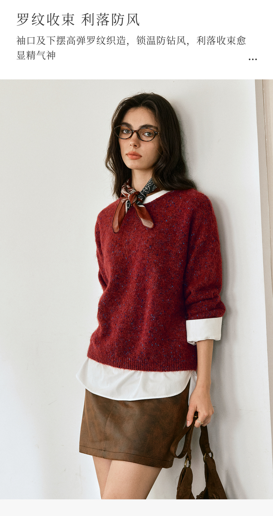 OLrain欧芮儿2025新款女秋季法式红色圆领毛织套头衫通勤长袖上衣