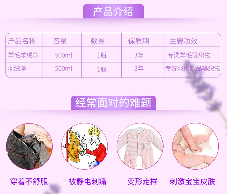【亚欧超市】威洁士薰衣草香羊毛羊绒净500ml*2