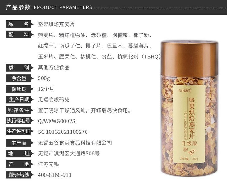五谷食尚 坚果烘培燕麦片500G有票JPY带授权招加盟代理