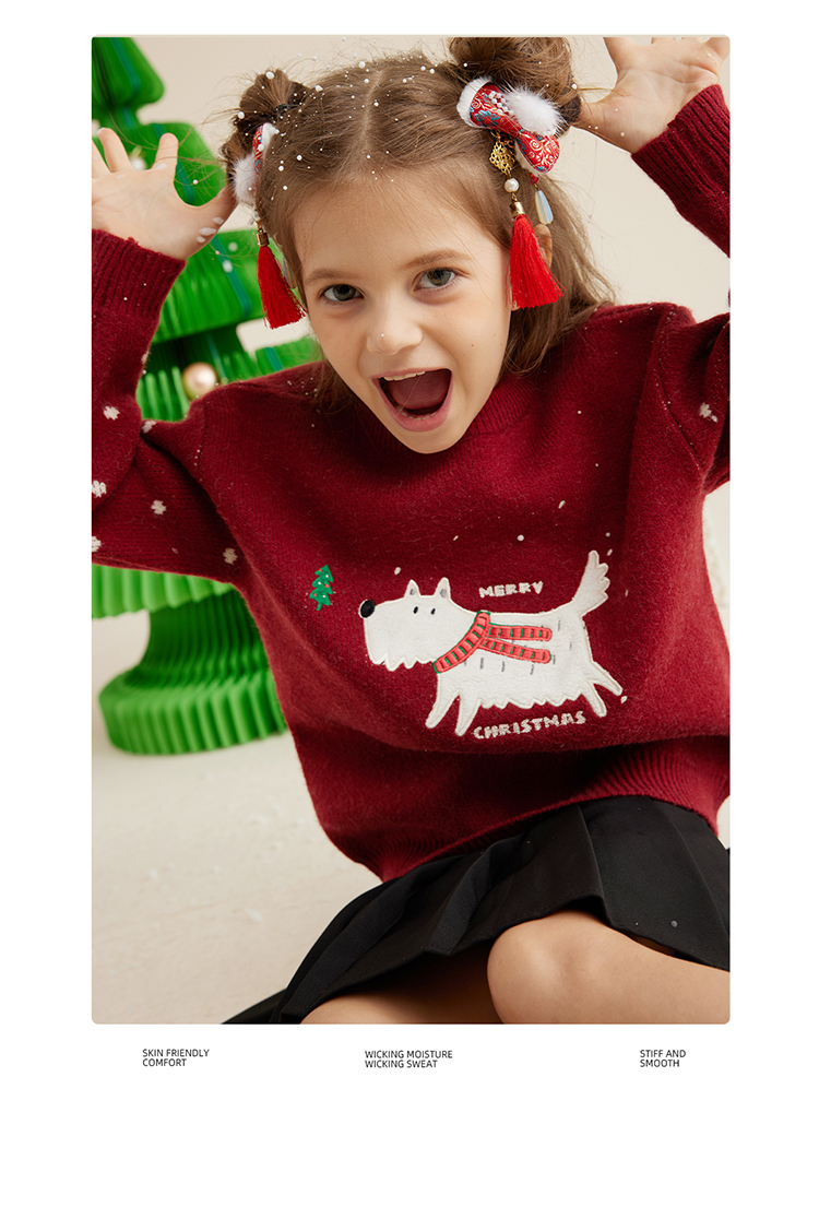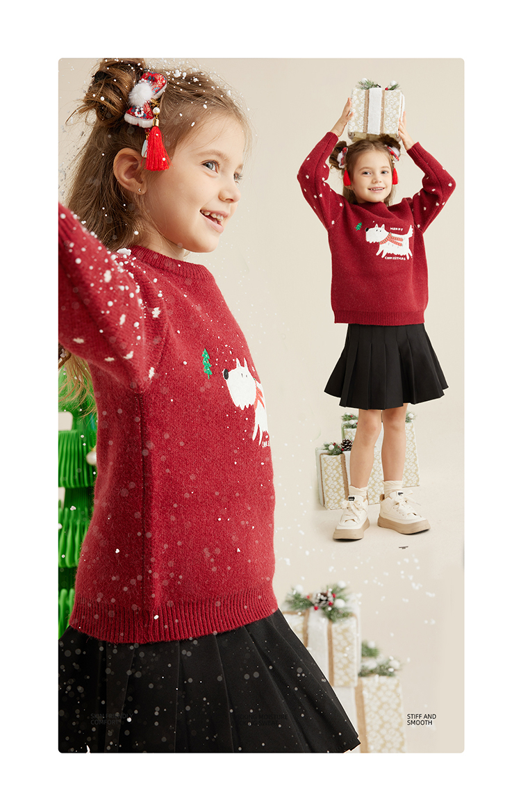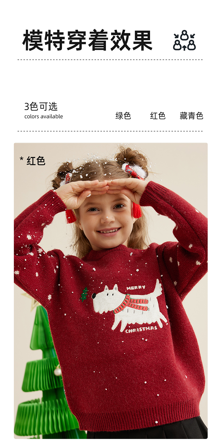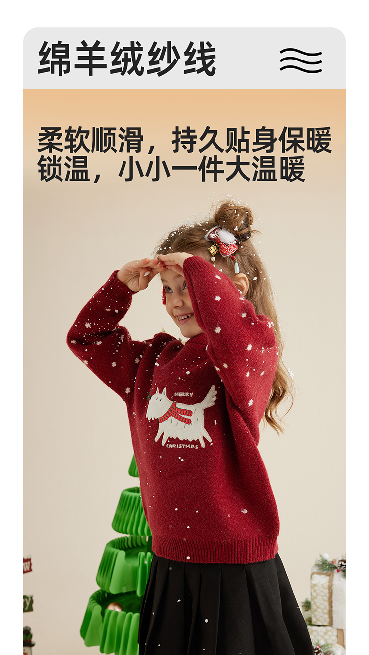 fx-【秋冬上新】【软糯绵羊绒纱线】儿童圣诞提花圆领毛衣PDMY2312