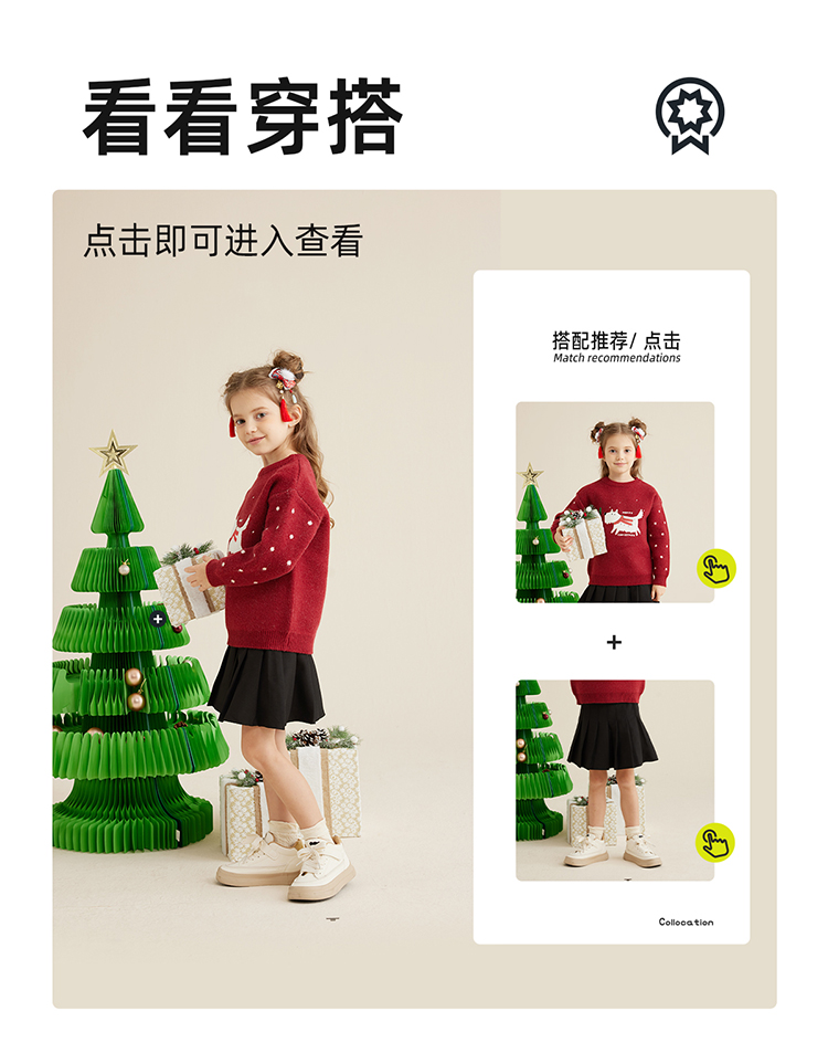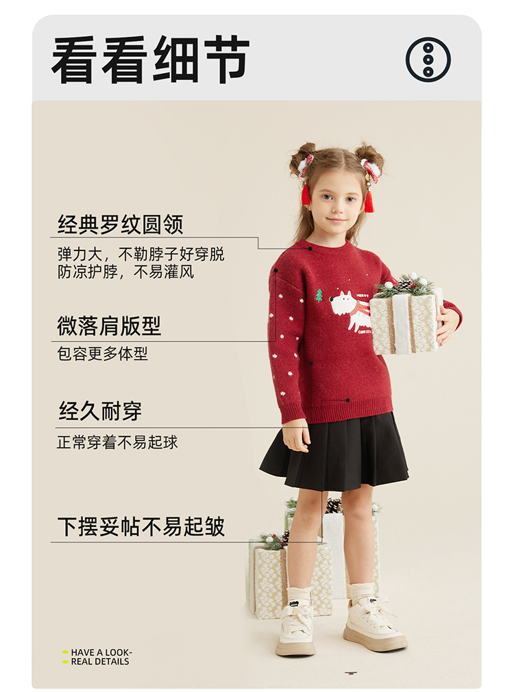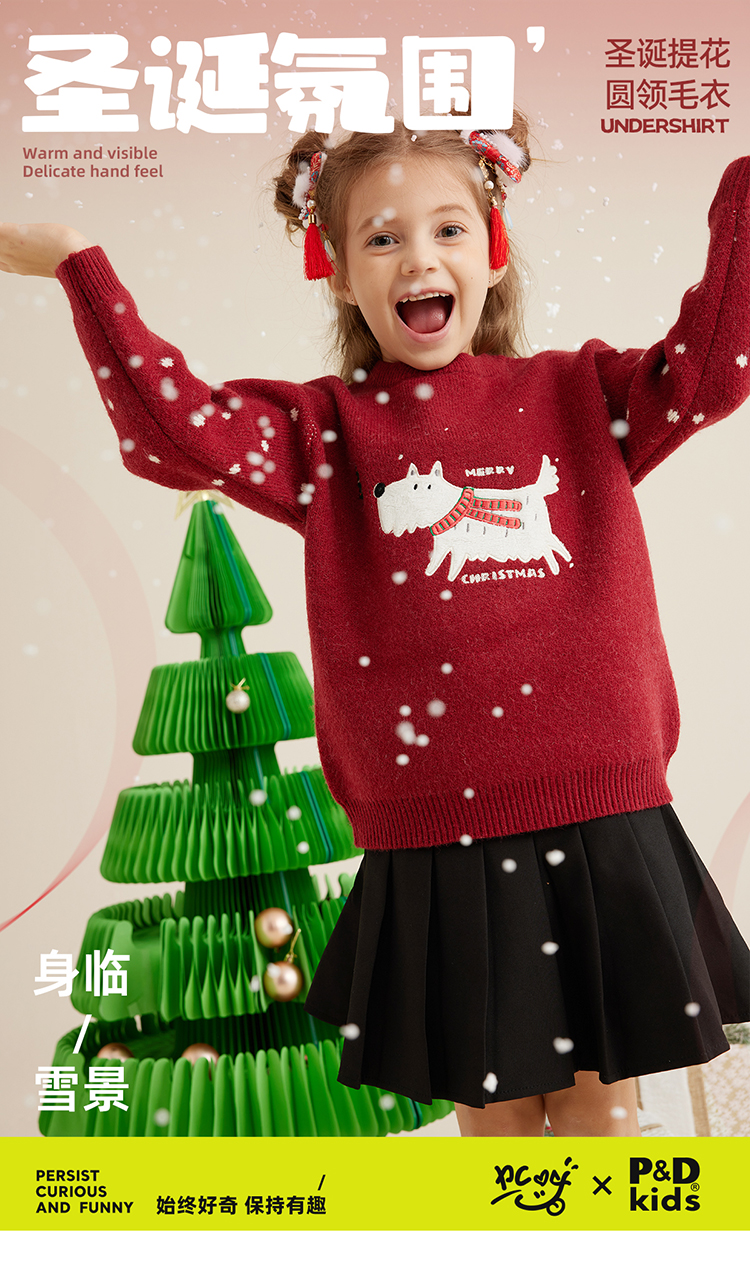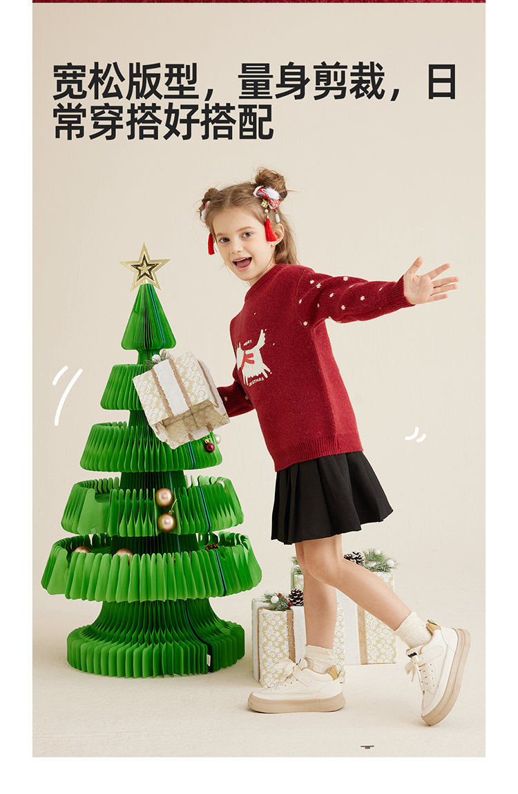 fx-【秋冬上新】【软糯绵羊绒纱线】儿童圣诞提花圆领毛衣PDMY2312