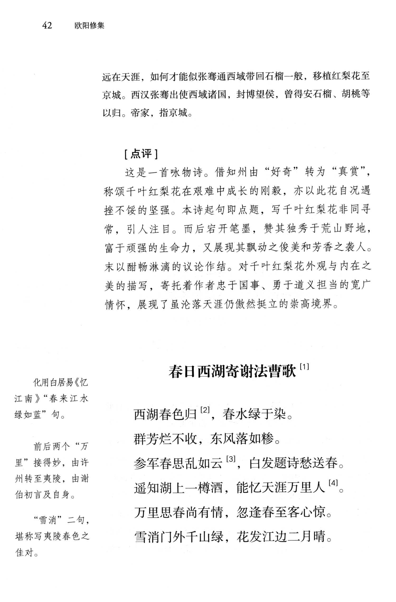 《欧阳修集-中华传统文化百部经典》精选了欧阳修的诗、词、文,并设“导读”“注释”“点评”三个栏目加以诠释。导读居该书之首,主要介绍作者生平、成书过程、主要内容、历史地位、时代价值等,行文力求准确平实。注释部分解释字词、注明难字读音,串讲句子大意,务求简明扼要。点评包括篇末评和旁批两种形式。篇末评撮述原典要旨,标以“点评”,旁批萃取思想精华,印于书页一侧,力求要言不烦,雅俗共赏。