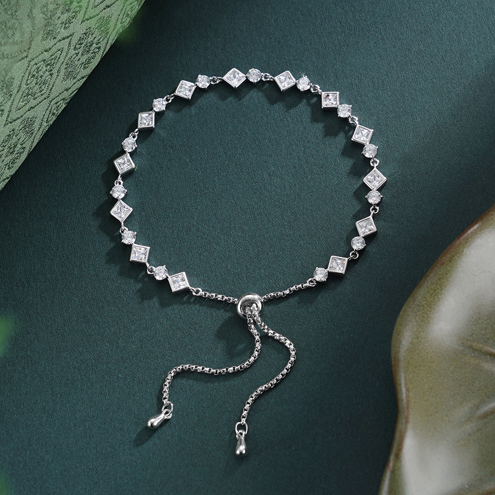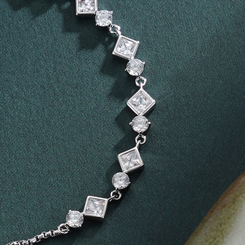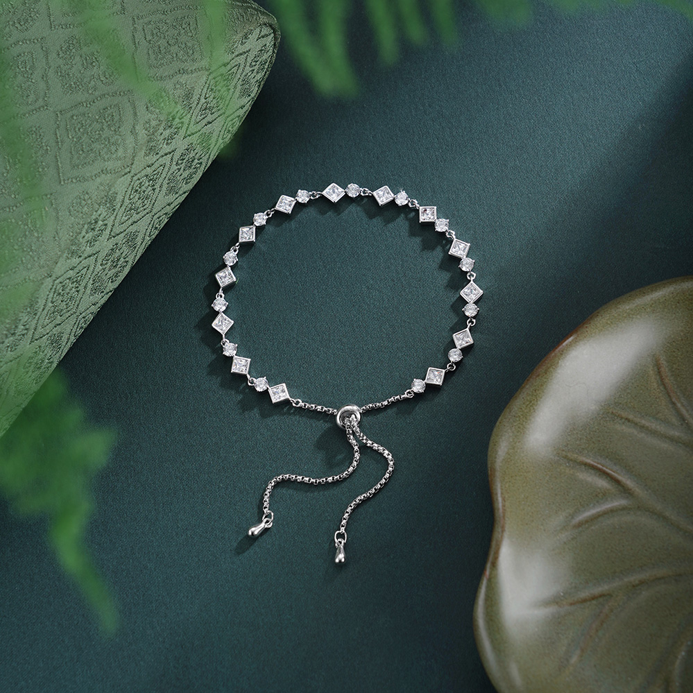 【寓意】:以纯银勾勒手链,缀以菱形锆石,如星轨交织,象征生活顺遂如星轨循行,在时光长河中收获智慧与荣耀。
