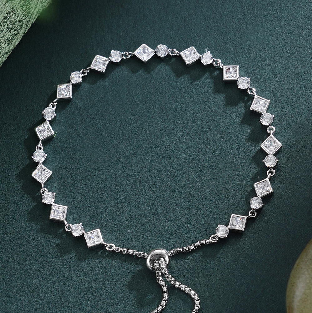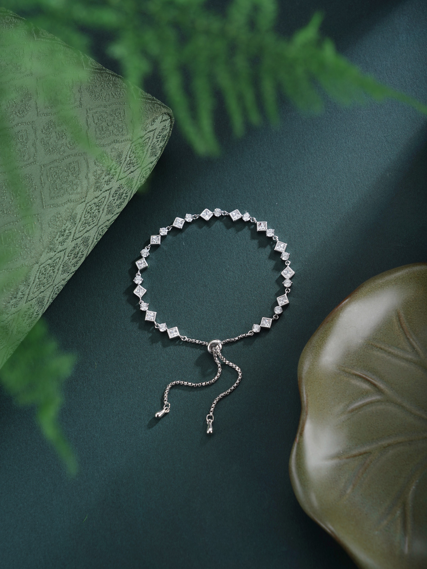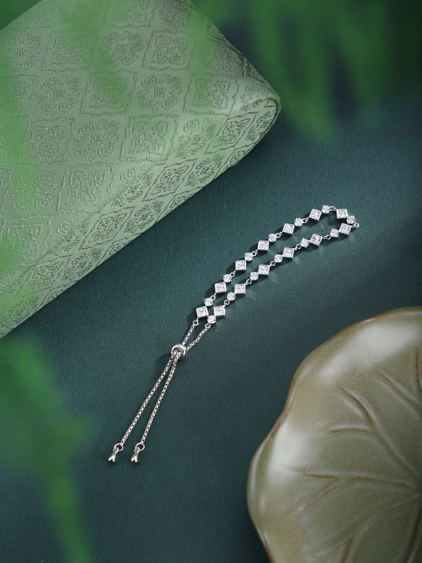 【寓意】:以纯银勾勒手链,缀以菱形锆石,如星轨交织,象征生活顺遂如星轨循行,在时光长河中收获智慧与荣耀。