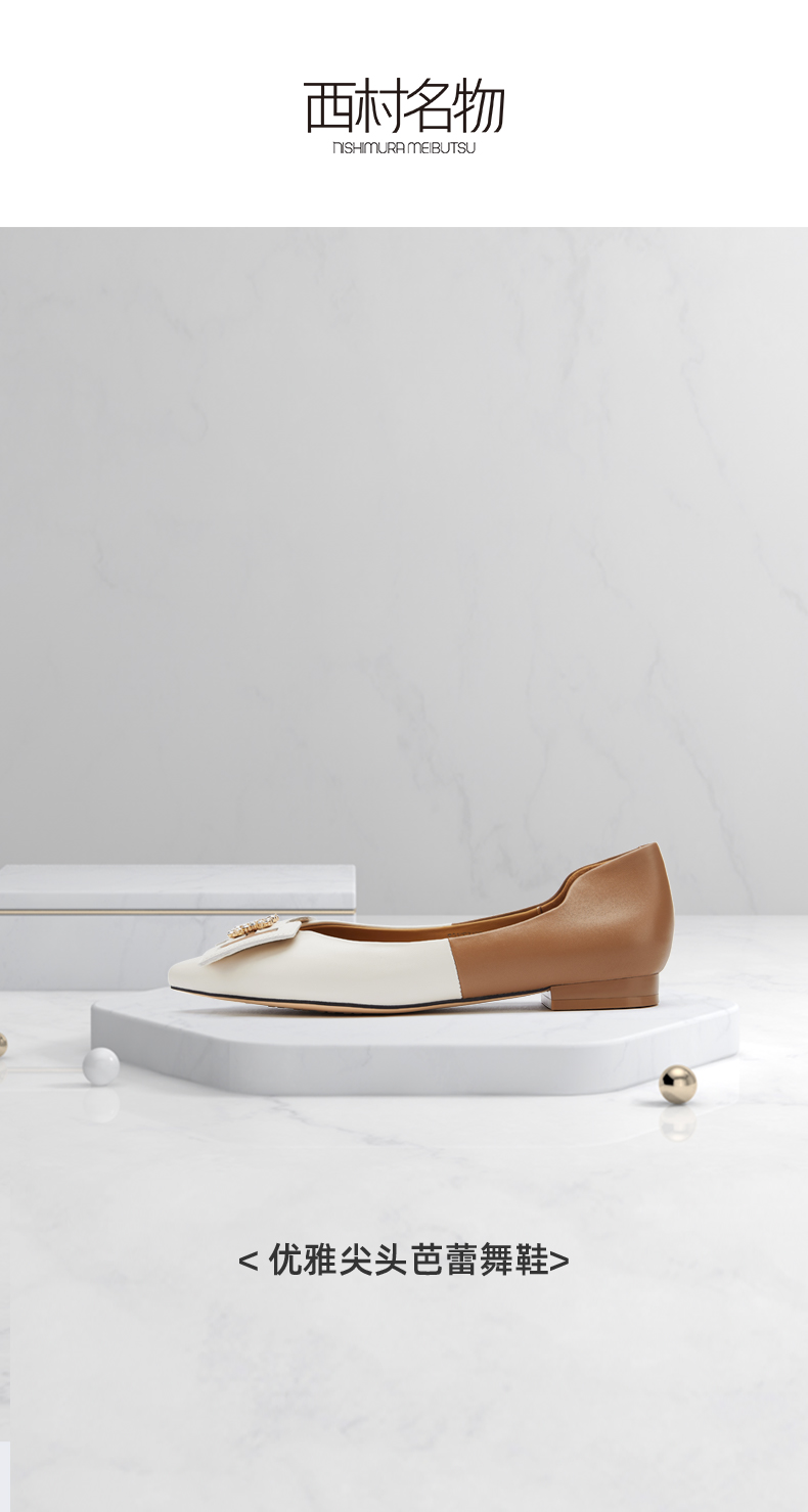 西村名物2021秋季新款平底鞋通勤时尚方头浅口低跟简约单鞋T21CE34271