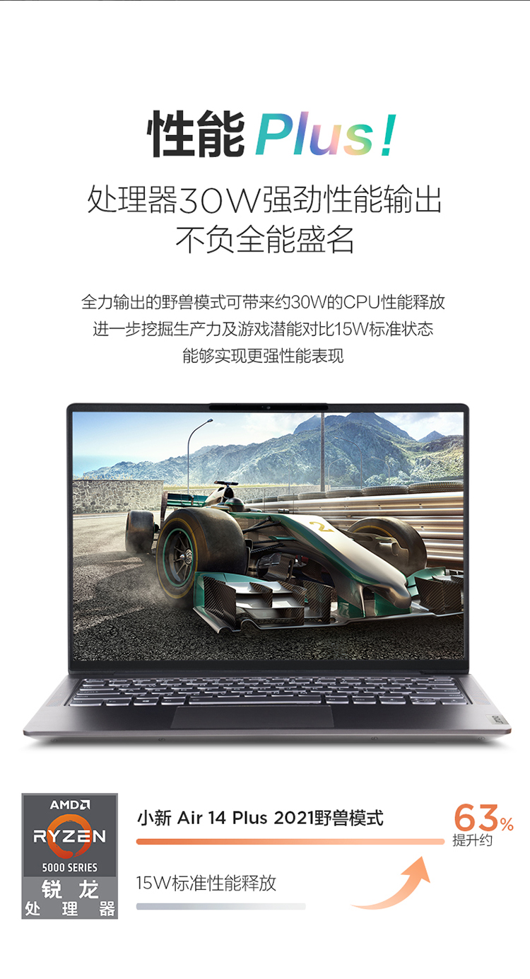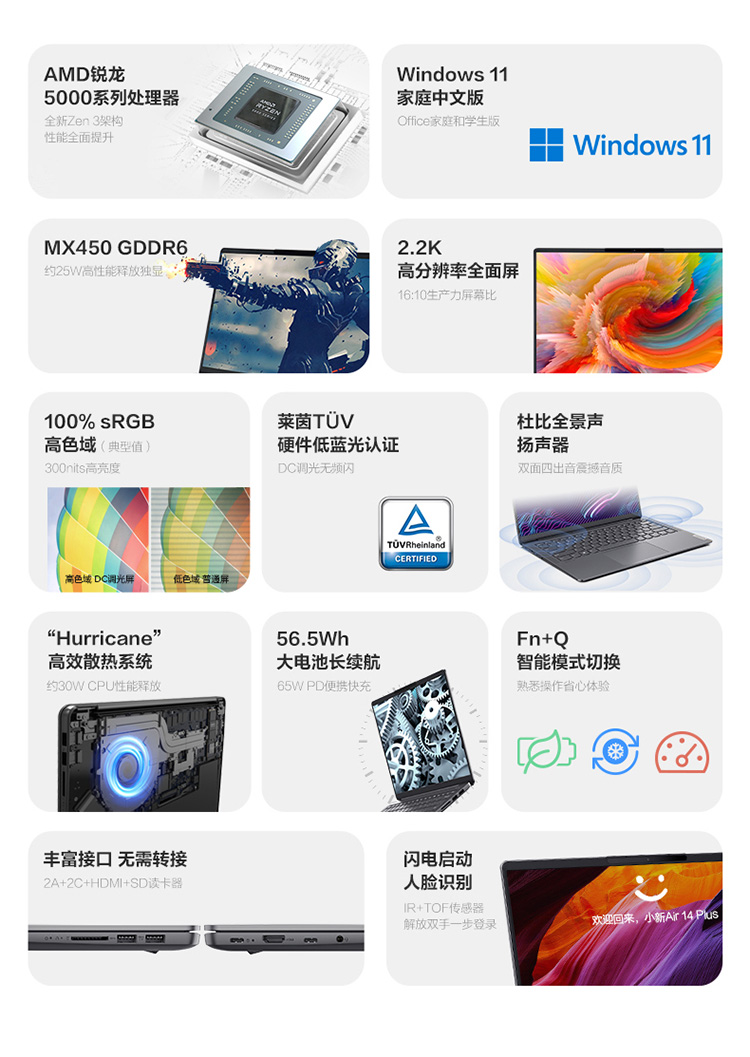 联想笔记本电脑小新Air14Plus锐龙版 14英寸2.2K全面屏商用办公轻薄本(6核R5-5600U 16G 512G MX450-2G )