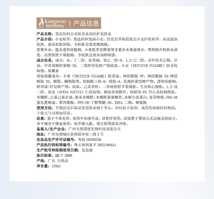 【小麦保湿水】全新小麦水 更补水更舒缓 小麦胚芽水润倍护保湿水120ml