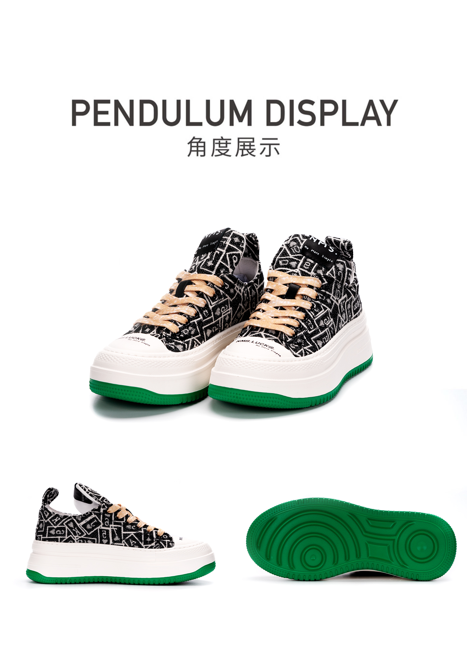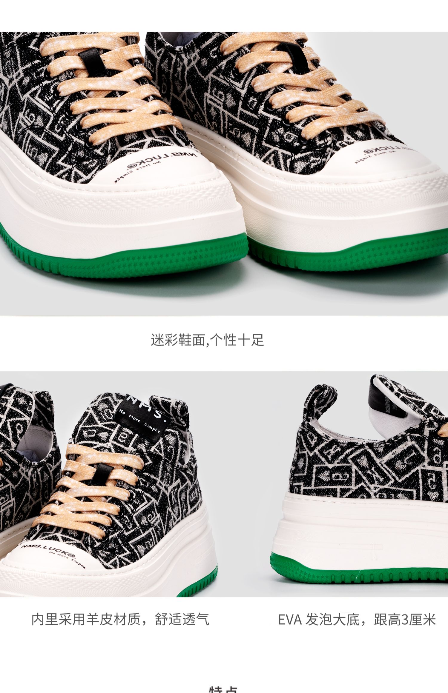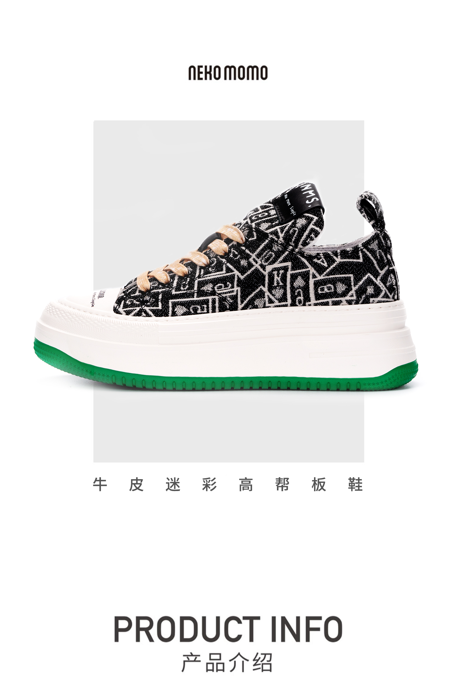 nekomomo2023年春季新款商场同款超轻花色牛仔布小绿底高帮板鞋女