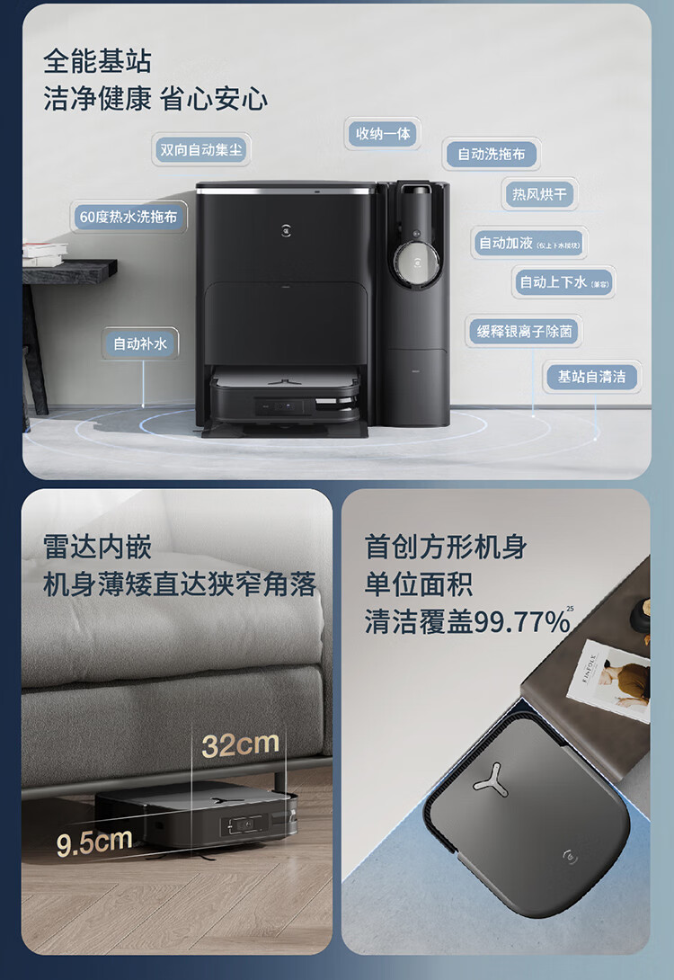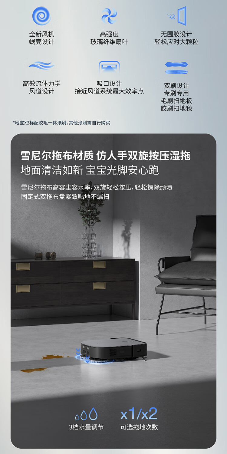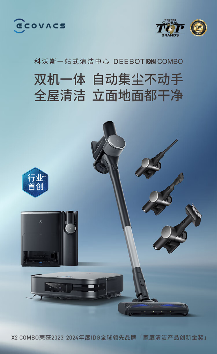 科沃斯(ECOVACS)扫地机器人扫拖一体X2 COMBO高配基站+吸尘器自动清洗集尘 60°C热水洗拖布多功能一体机立体清洁