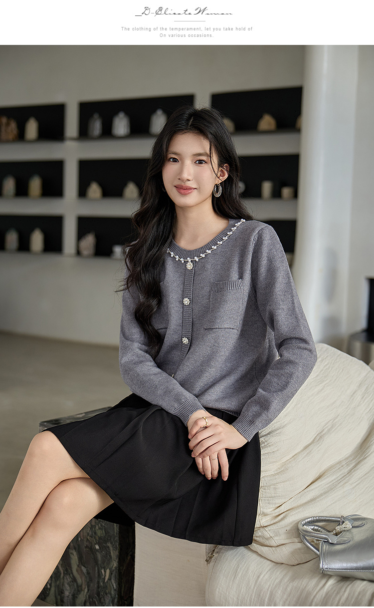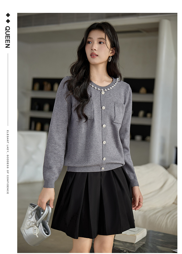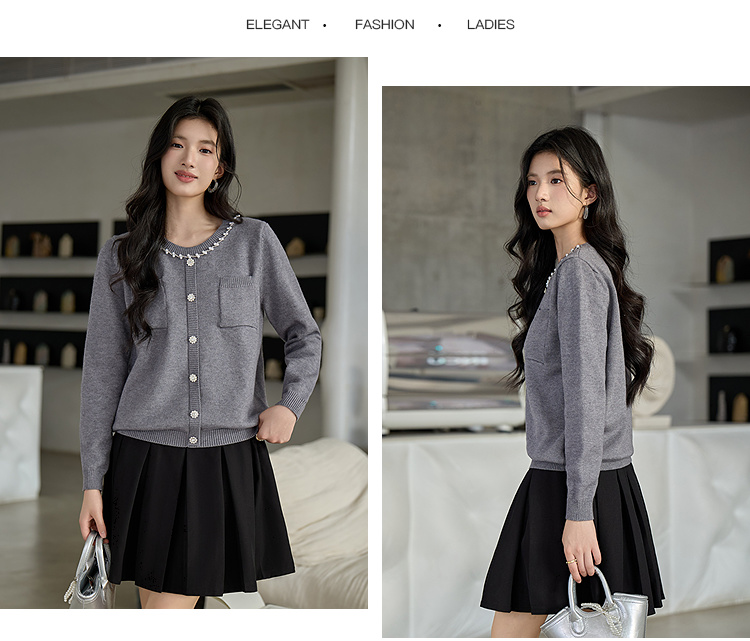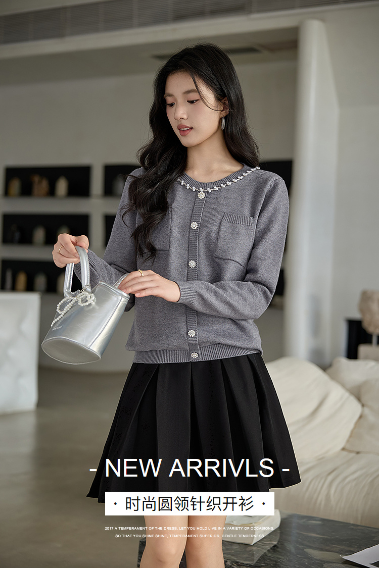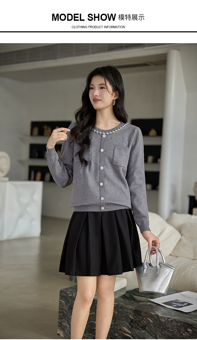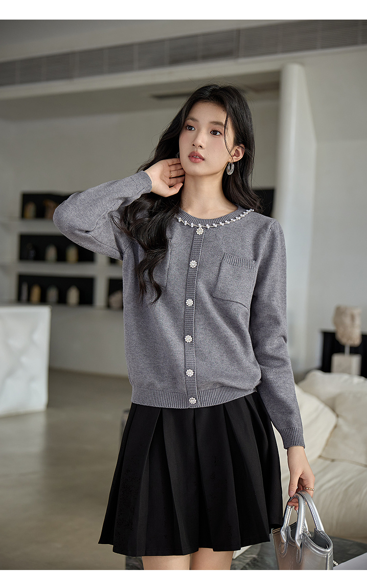 奢姿大码女装2025冬季时尚钻饰圆领针织开衫胖妹妹气质减龄上衣9854670277