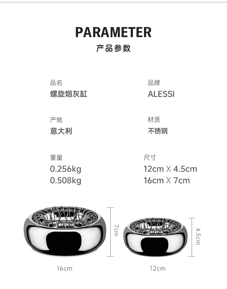 ALESSI/不锈钢烟灰缸轻奢雪茄烟缸简约欧式家用客厅办公室