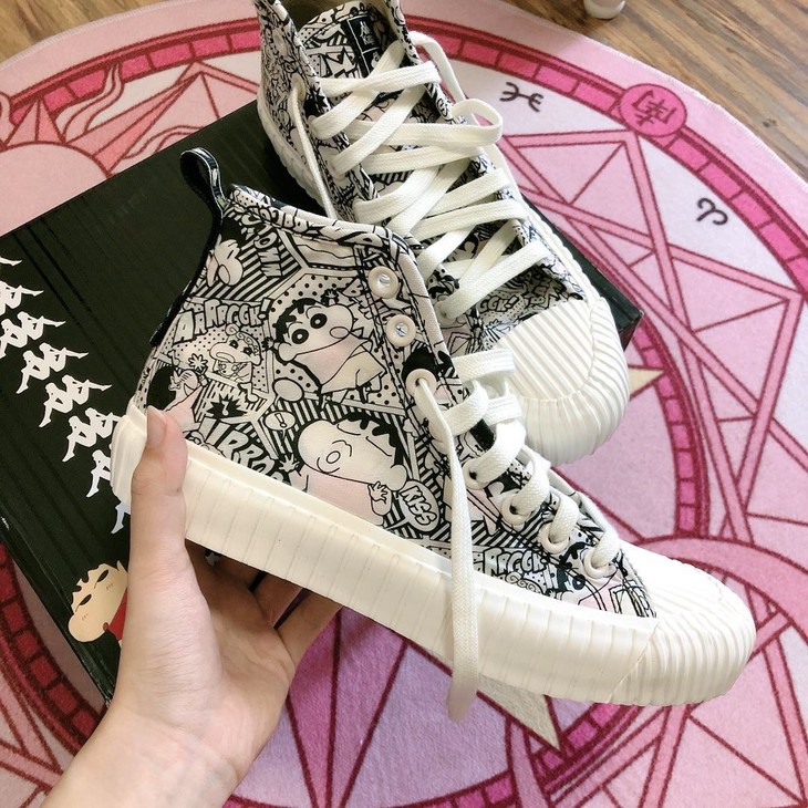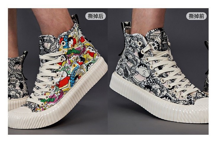 Kappa 卡帕 蜡笔小新 联名款高帮帆布休闲板鞋 鞋面可撕 漫画款拉回你的童年记忆 黑白漫画撕开的双层设计