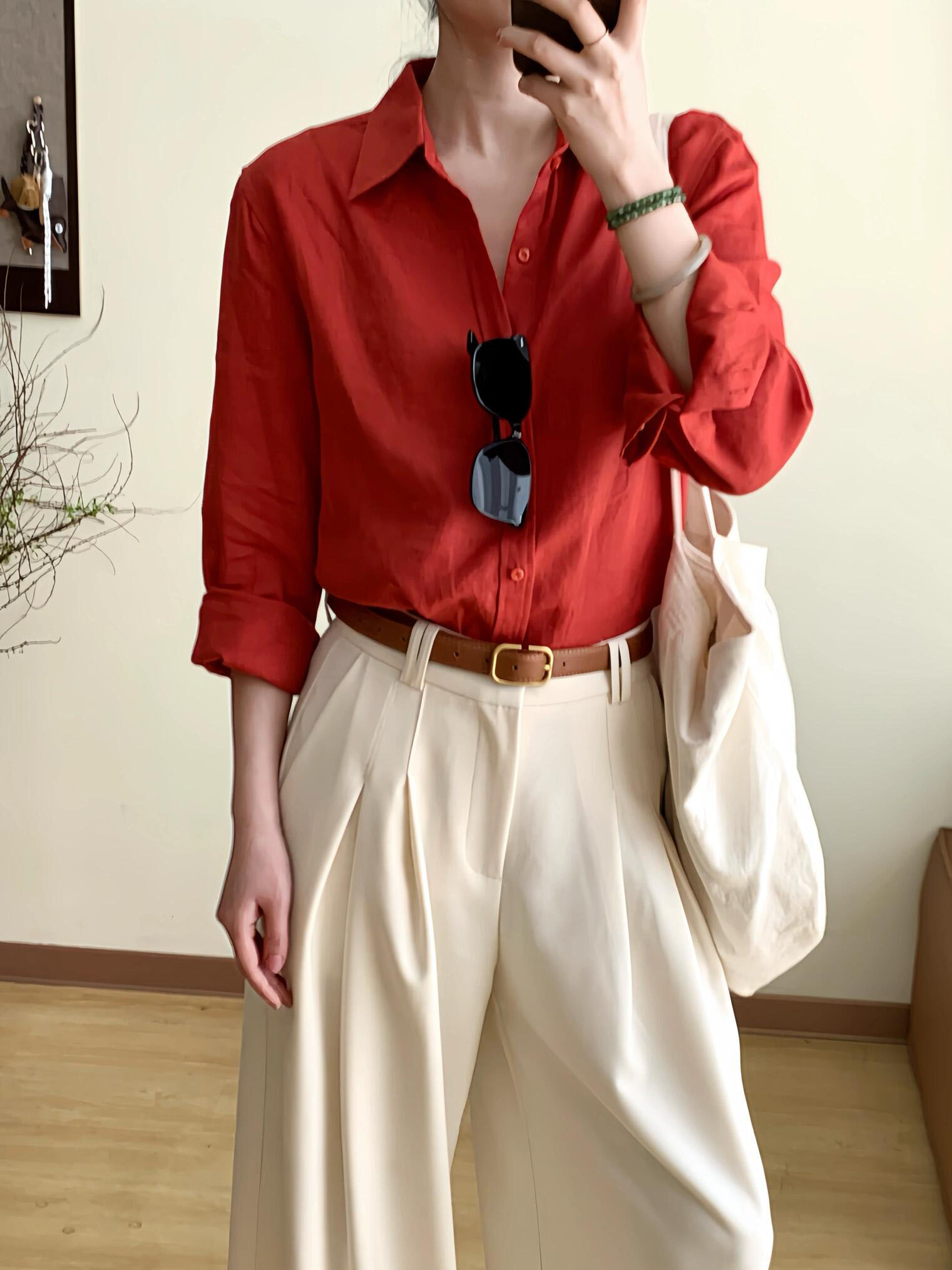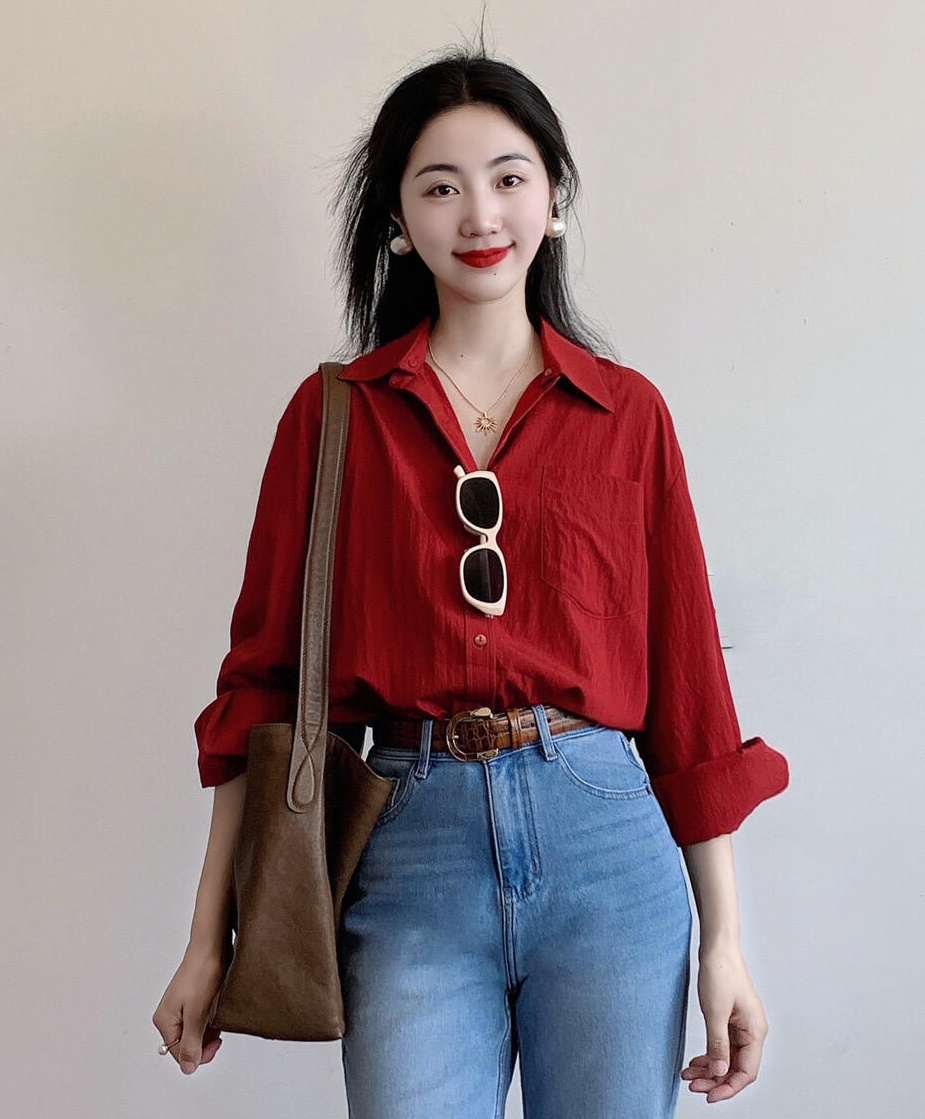 老米优品🎈3-5天发!《秋日番茄红 复古天丝衬衫》秋日松弛氛围感单品, 显白番茄红 亲肤不闷汗~