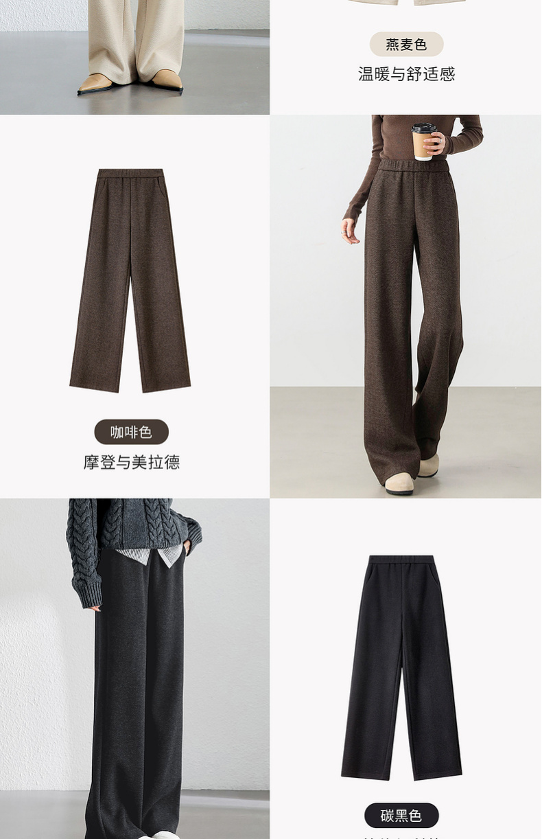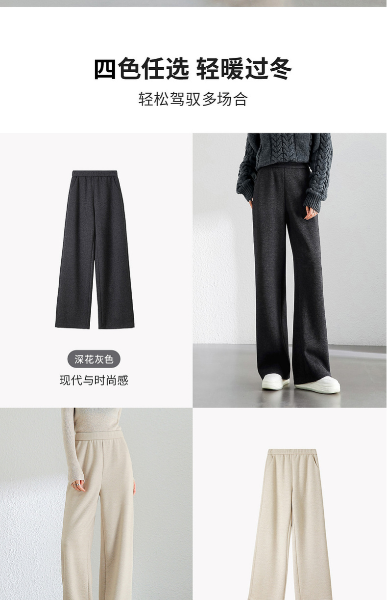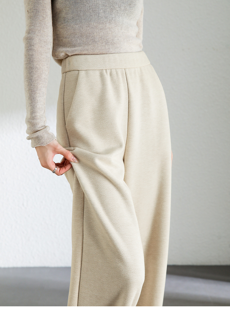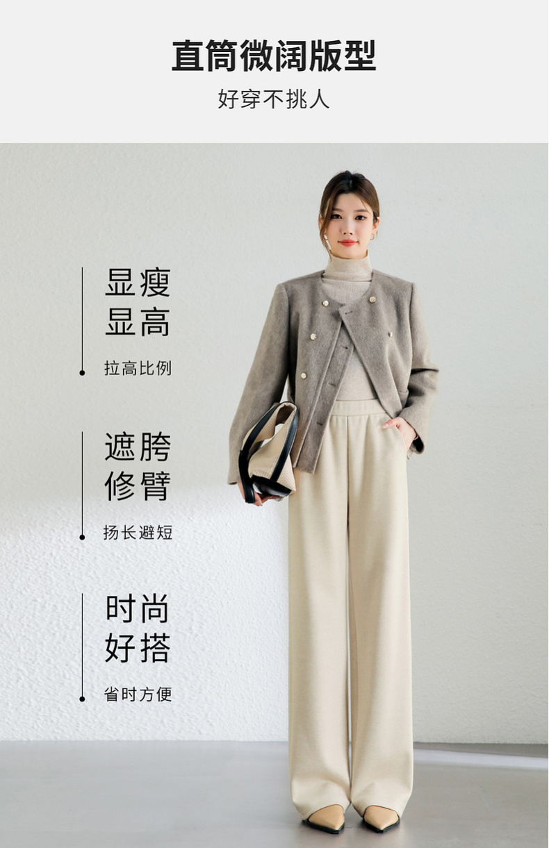 【内购】气质通勤松紧带实用口袋舒适保暖加厚呢料含绵羊毛直筒裤-144K56338