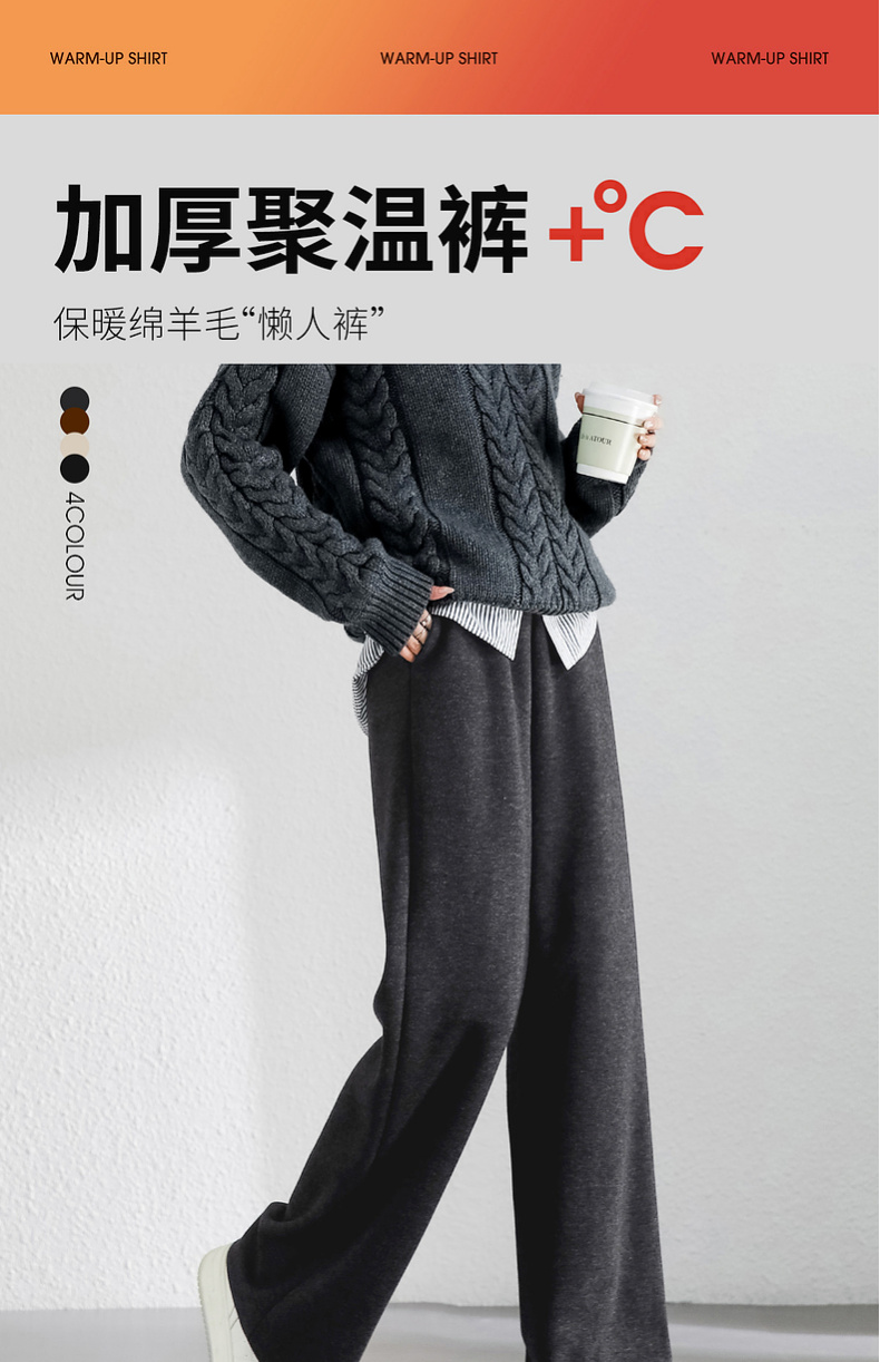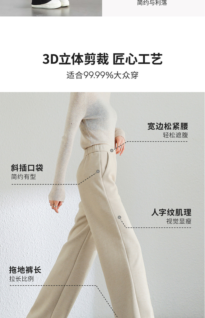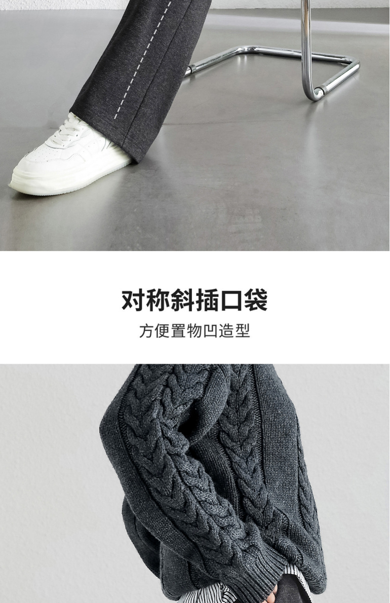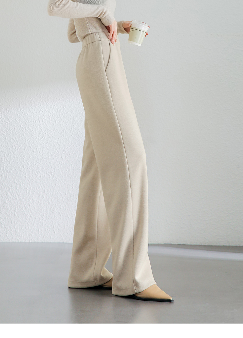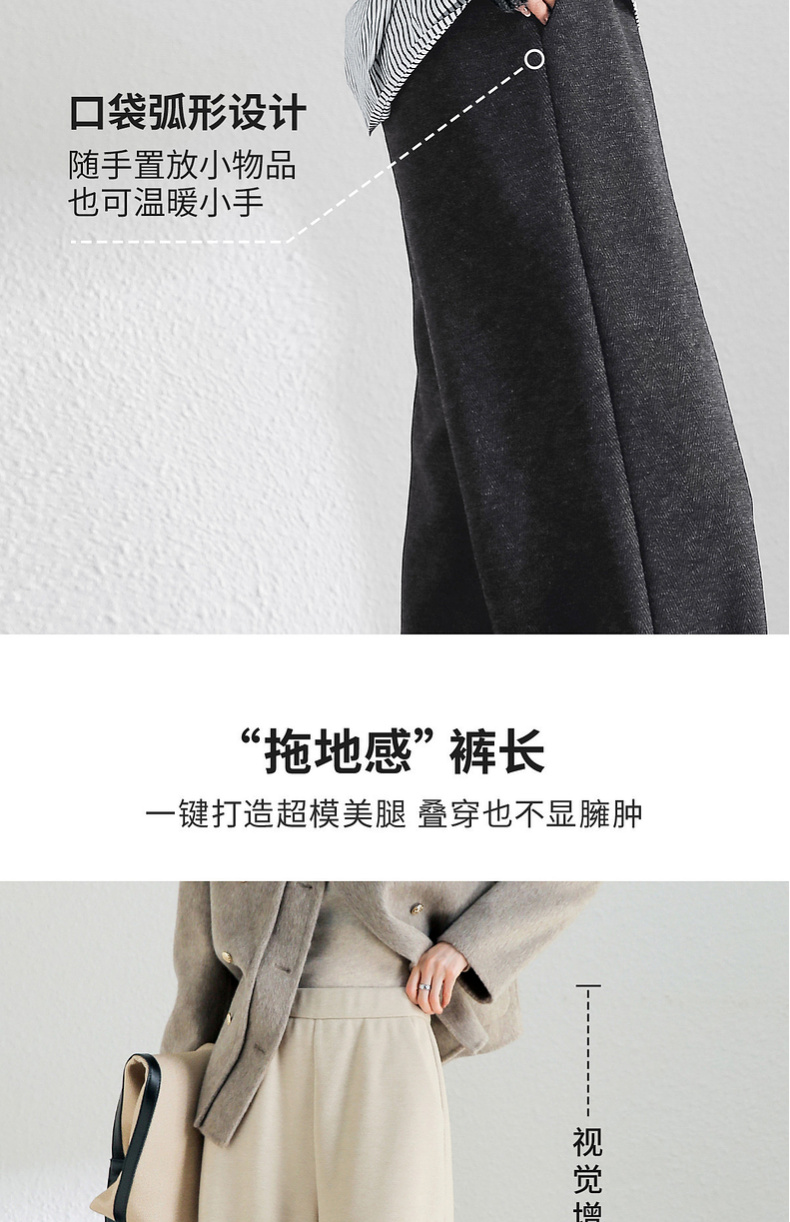 【内购】气质通勤松紧带实用口袋舒适保暖加厚呢料含绵羊毛直筒裤-144K56338