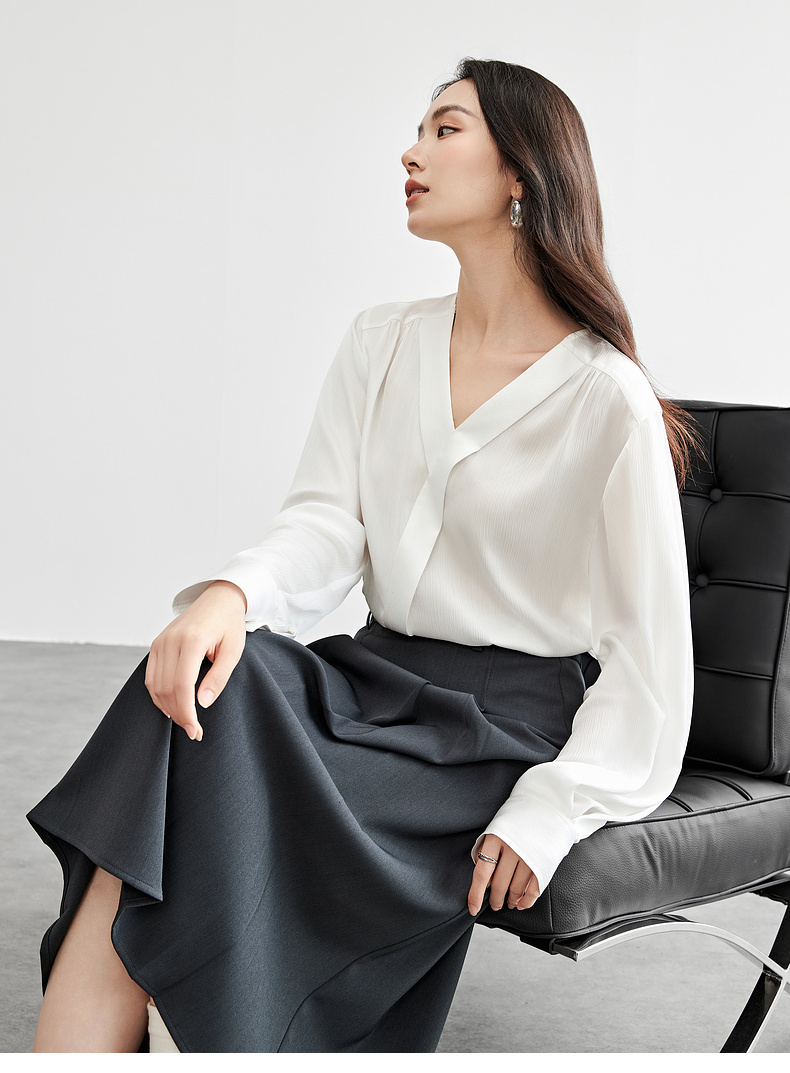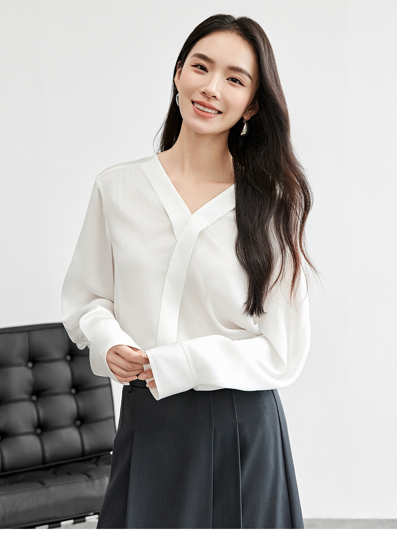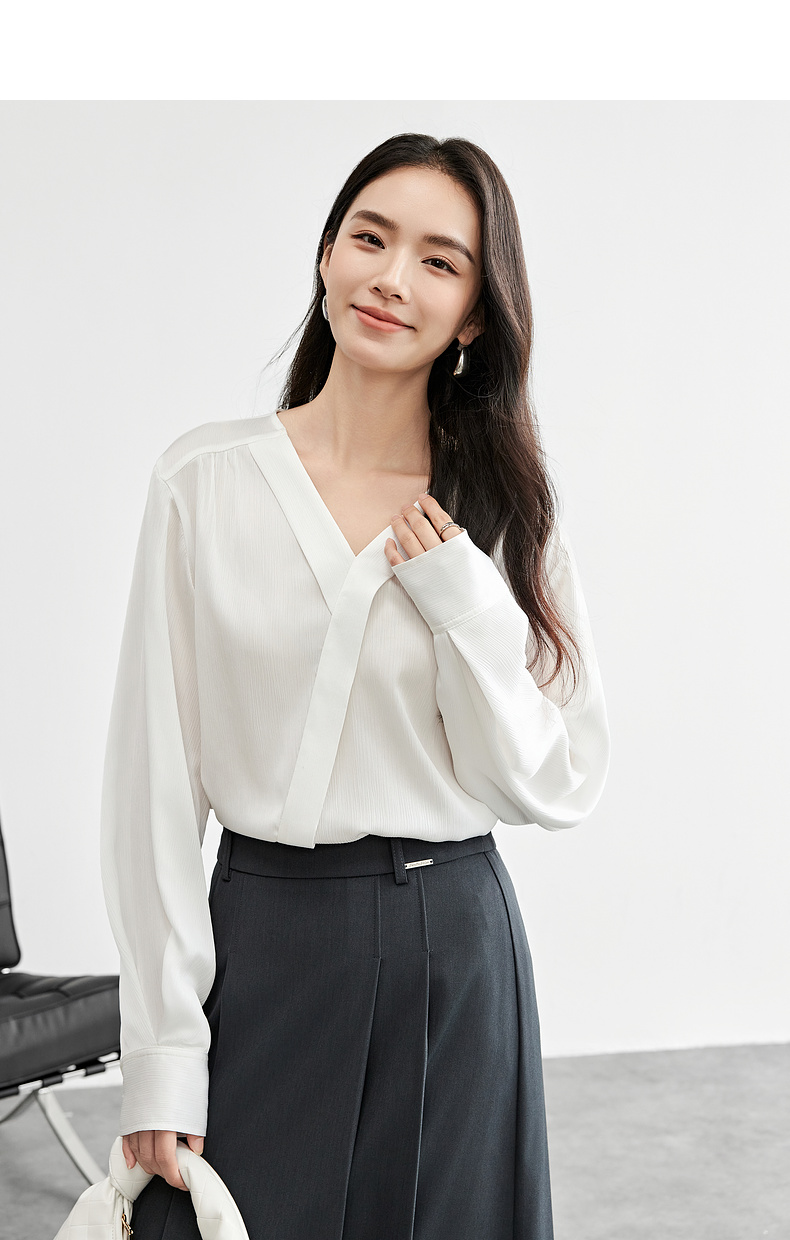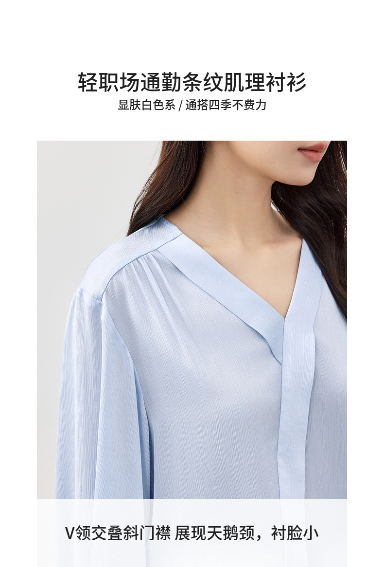 【内购】【轻职场衬衫】通勤气质V领交叠斜门襟条纹肌理轻薄空调衫衬衫-151C58124