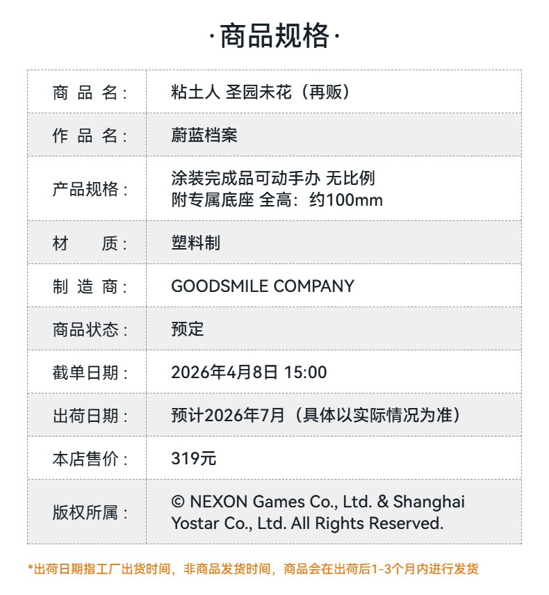 【GSC预售定金】粘土人 圣园未花 蔚蓝档案 附官方限定特典