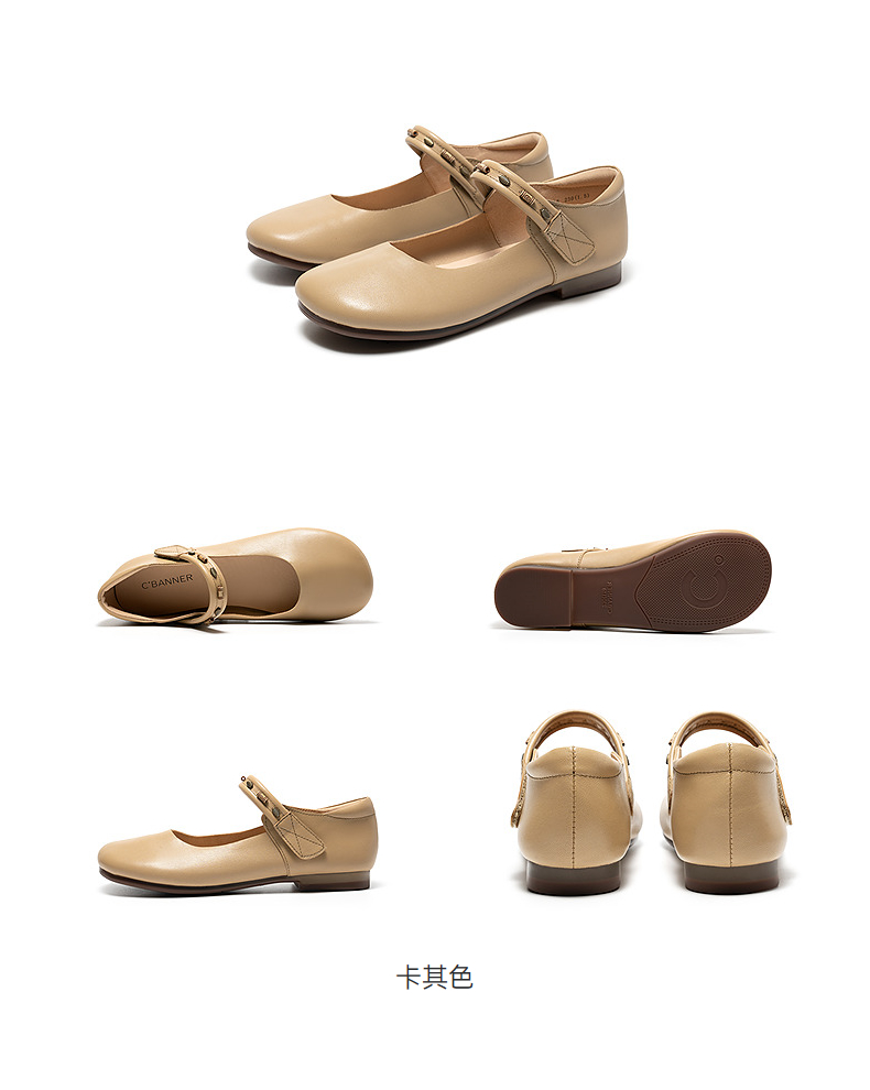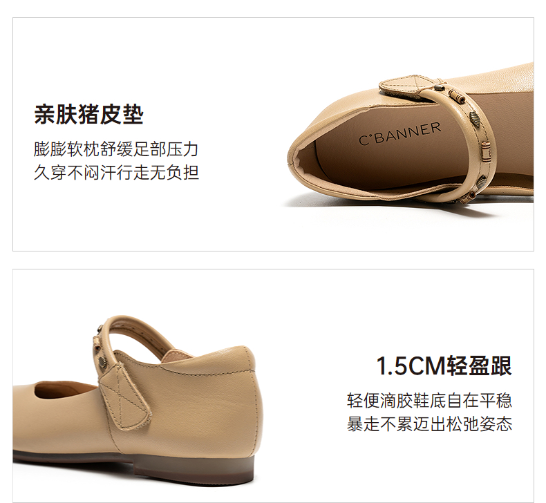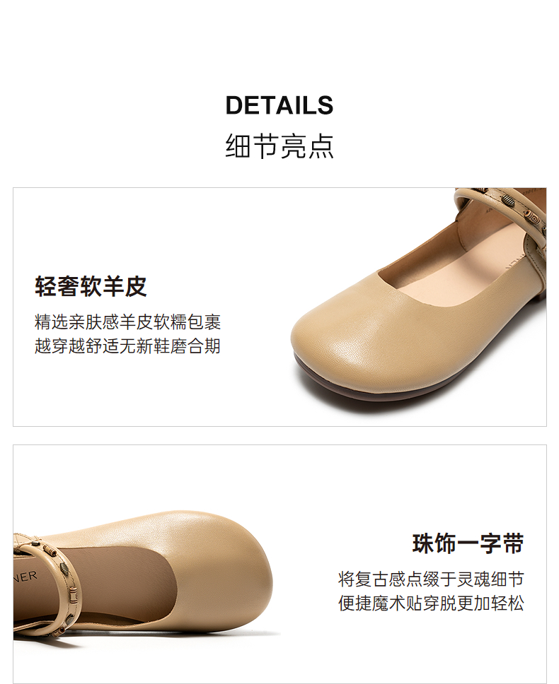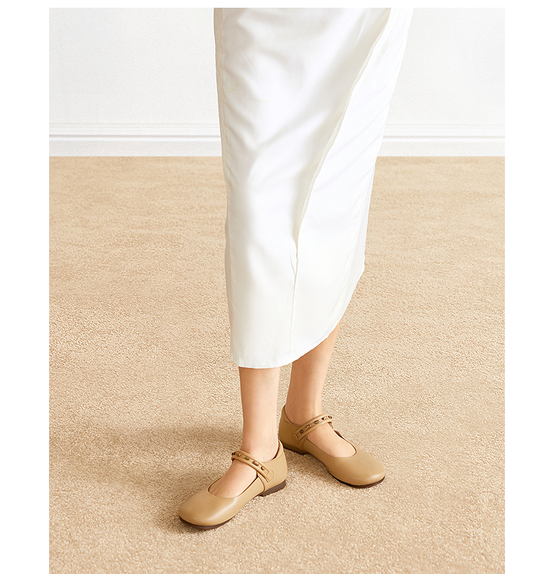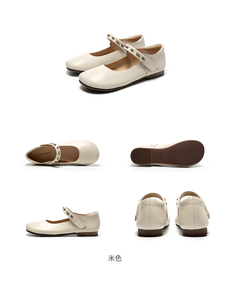 千百度珠饰软面羊皮玛丽珍鞋女2026春季新款勃肯鞋平底浅口单鞋A26150608