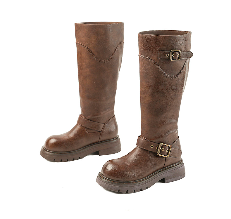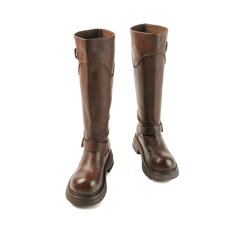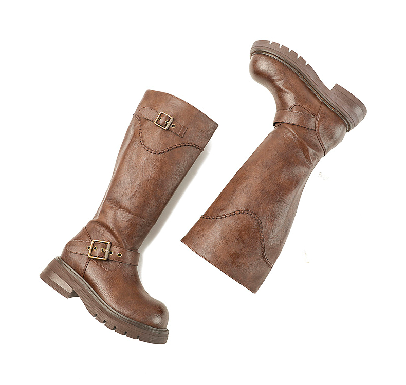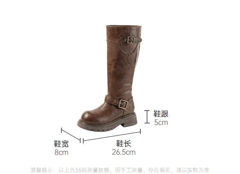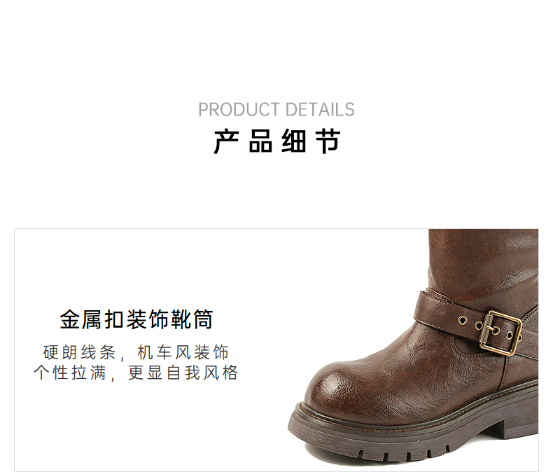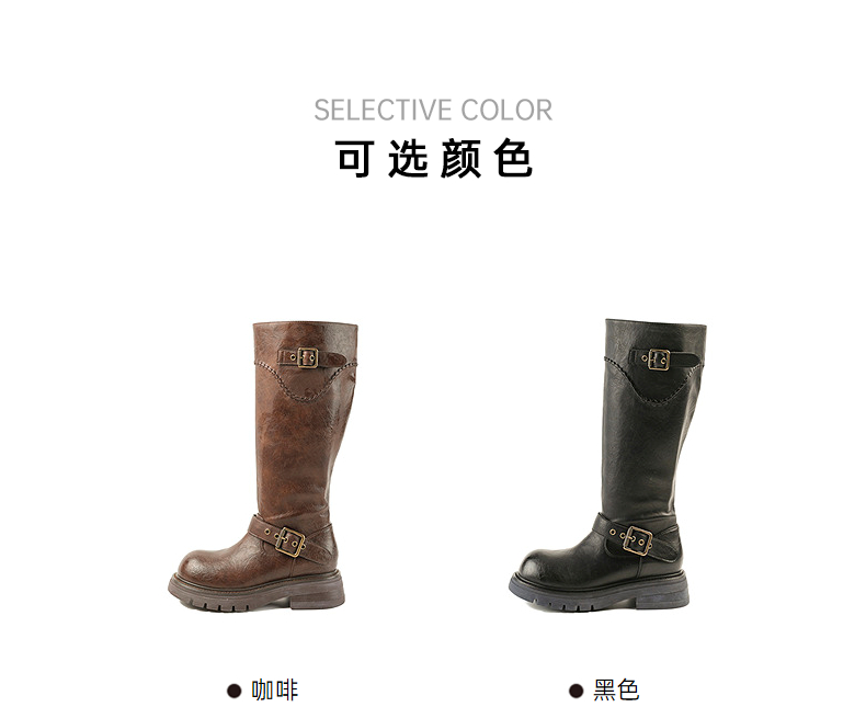 伊伴冬季机车风酷飒长筒骑士靴圆头粗跟增高B25505302