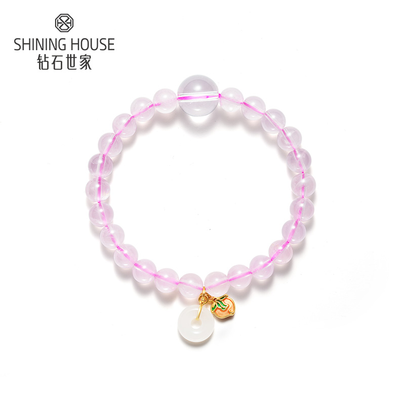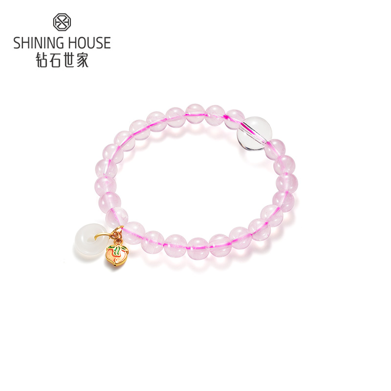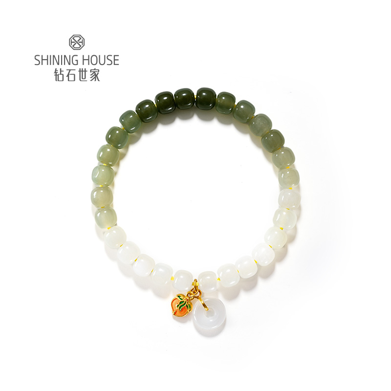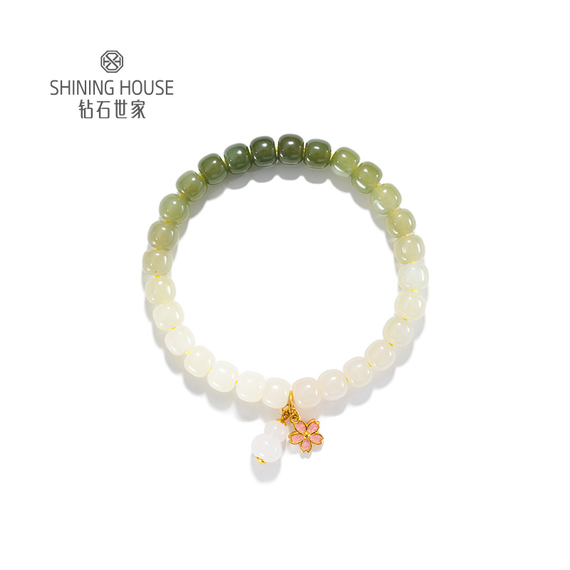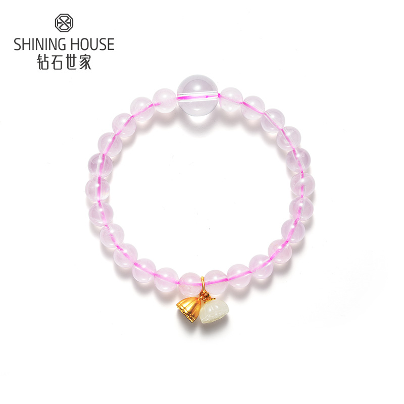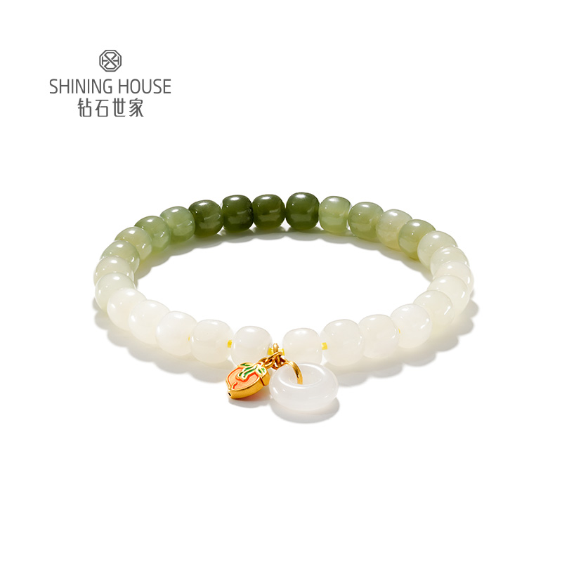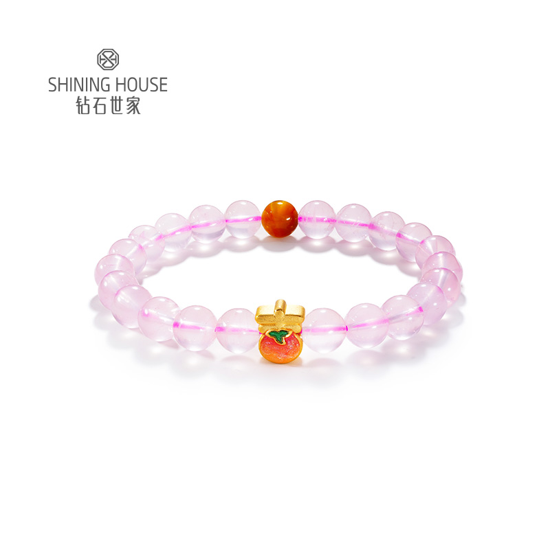 【定价黄金】【限时8折】【现货】钻石世家 足金和田玉水晶手串 芙蓉石/白水晶/和田玉 3D硬金黄金手链手串
