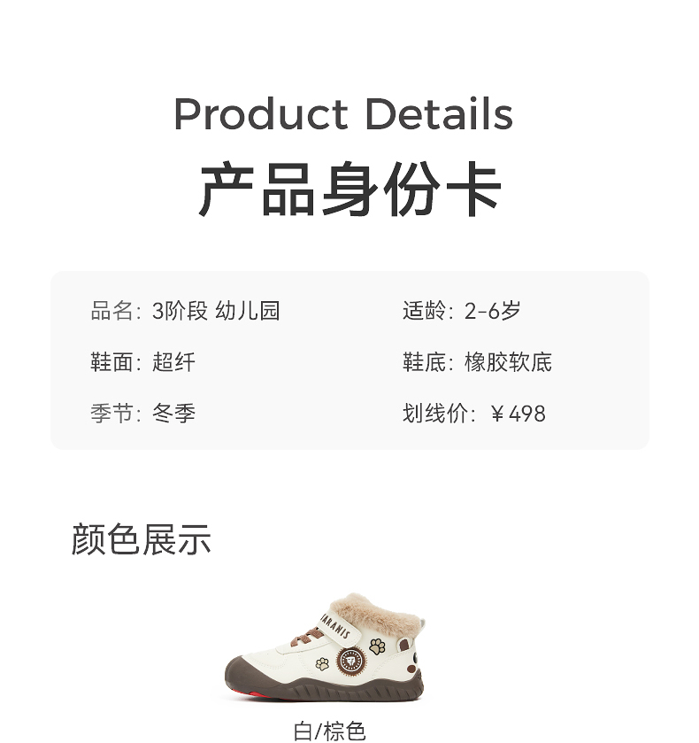 泰兰尼斯童鞋2025冬季新款儿童幼儿园室内鞋保暖男童休闲学步板鞋T02X5D6895