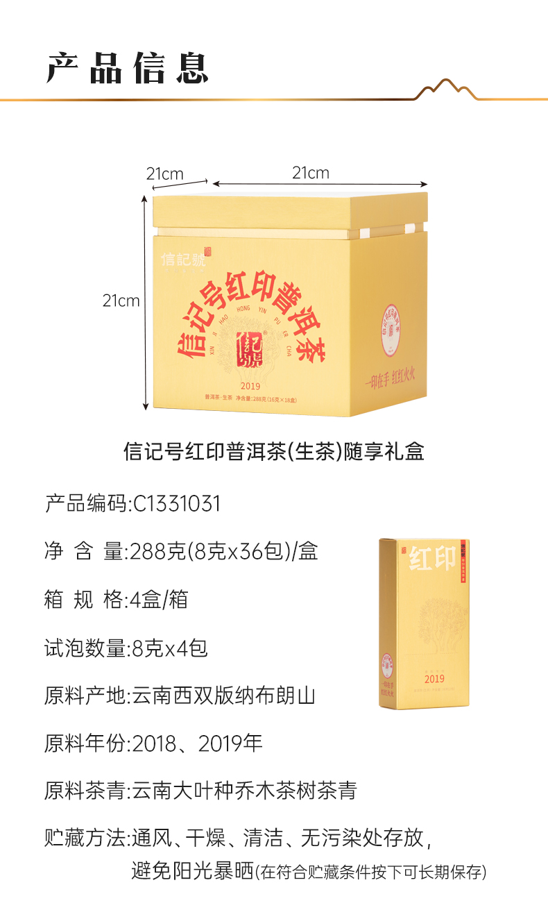 八马信记号|普洱生茶 信记号红印普洱茶(生茶)随享礼盒C1331031