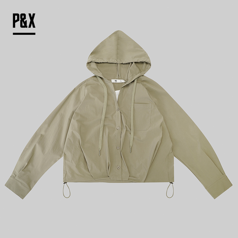 P&X设计师2025夏季新款连帽宽松腰果花纹防晒衬衫825205083 紫色